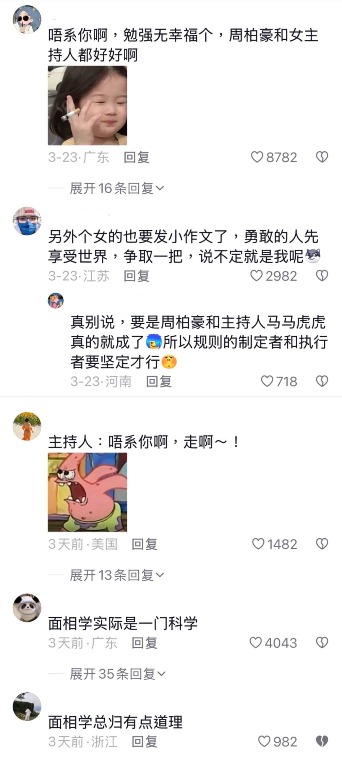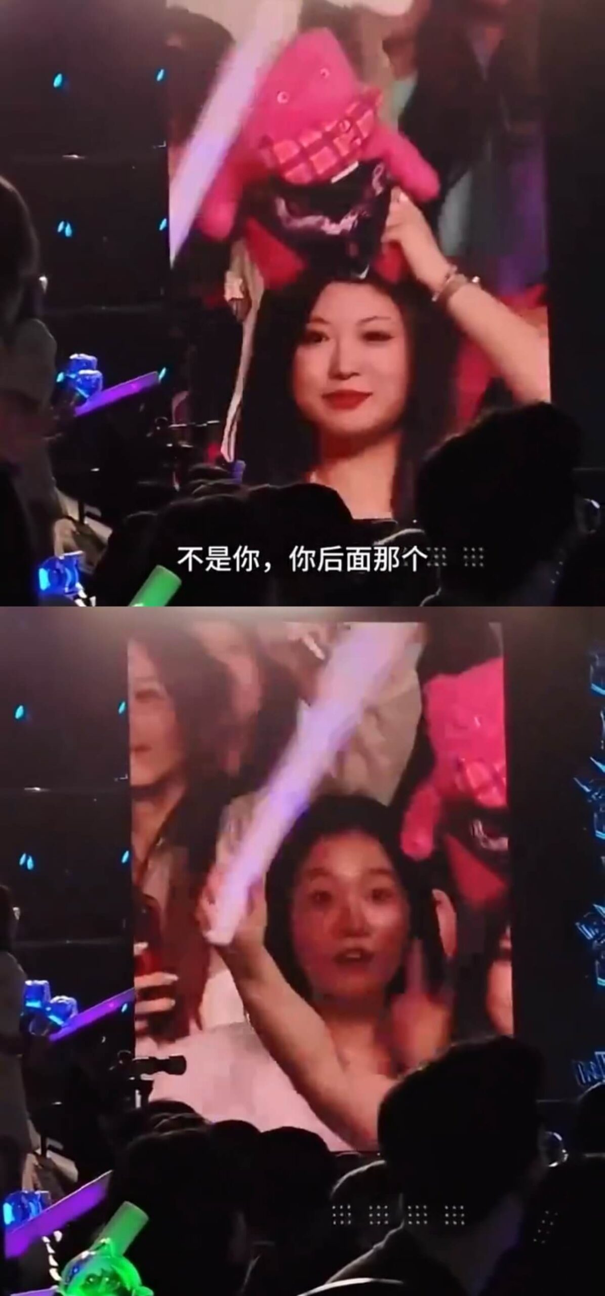 結果沒想到站在這位幸運兒左前方的一名觀眾,突然將自己塞進了鏡頭中,這時周柏豪和主持人已經提醒這位女生不是她👇