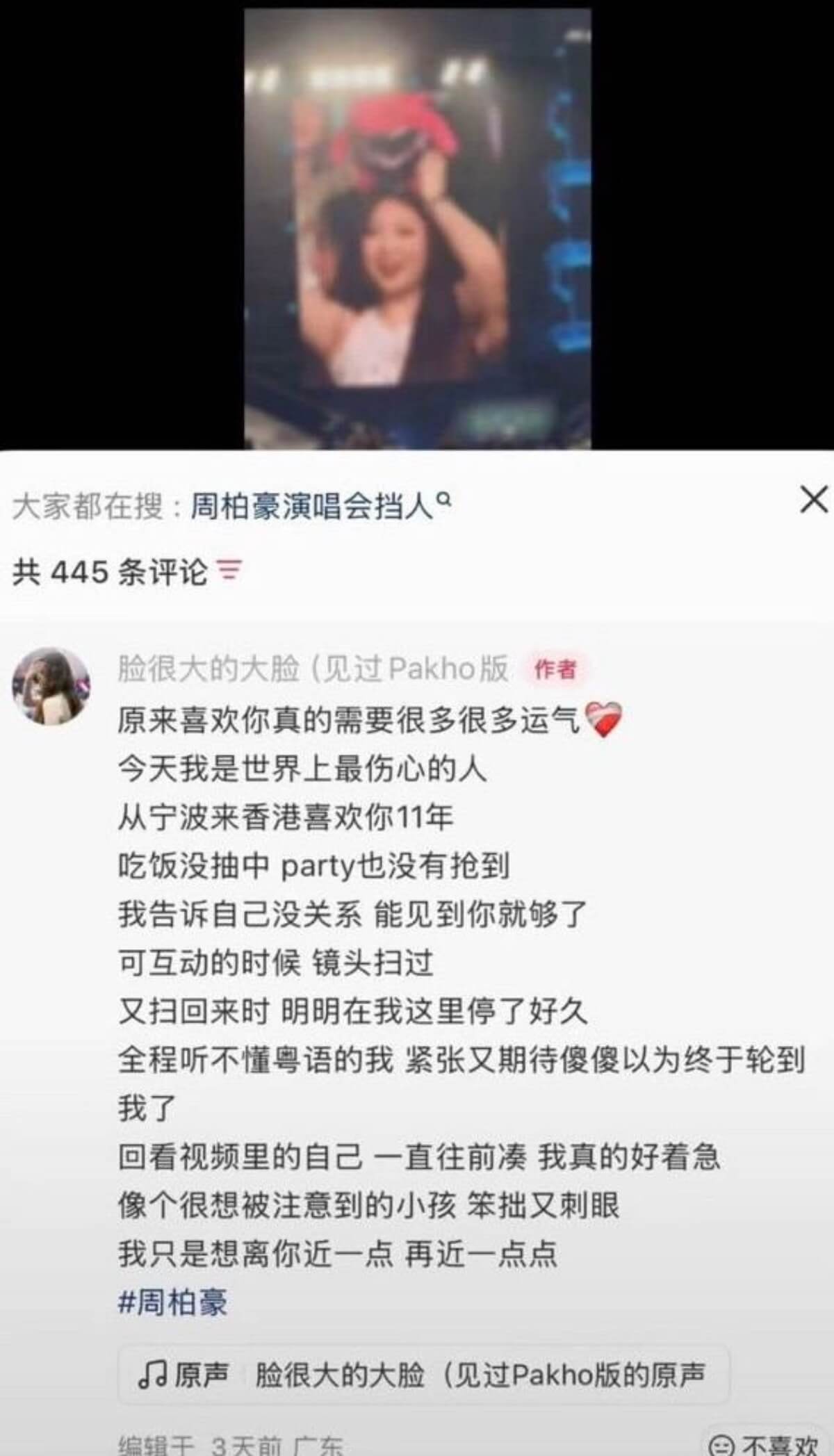 事情的起因是周柏豪在演唱會上,讓攝像機拍到的女觀眾上台👇