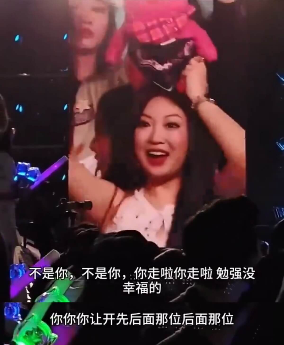 周柏豪和女主持不斷對這位擋鏡頭的觀眾喊話:「不是你,不是你,你走啦你走啦,勉強沒幸福!」