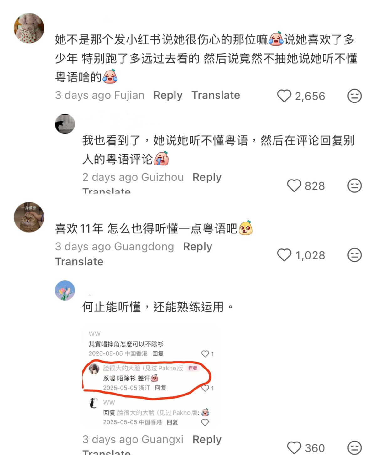 雖然但是,她的小作文被網友審判到刪帖,網友表示說喜歡了周柏豪11年,居然聽不懂這麼簡單的粵語很不合邏輯,加上她被捉包還以粵語回復過其他網友👇