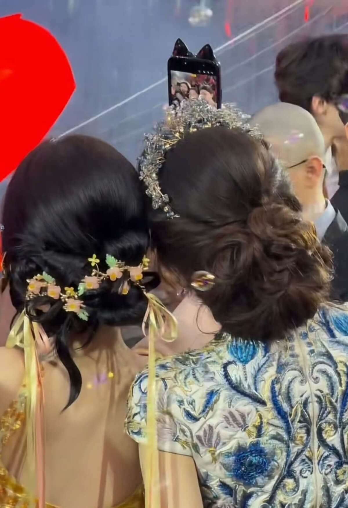 根據現場影片,虞書欣還是特地穿越人群,找了這兩人合照👇
