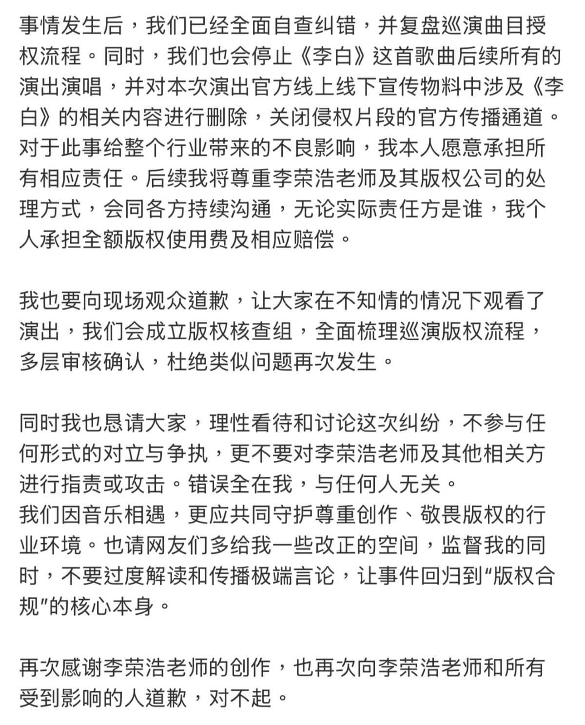 4.呼籲理性討論,不攻擊他人,承諾加強版權審核、杜絕再犯