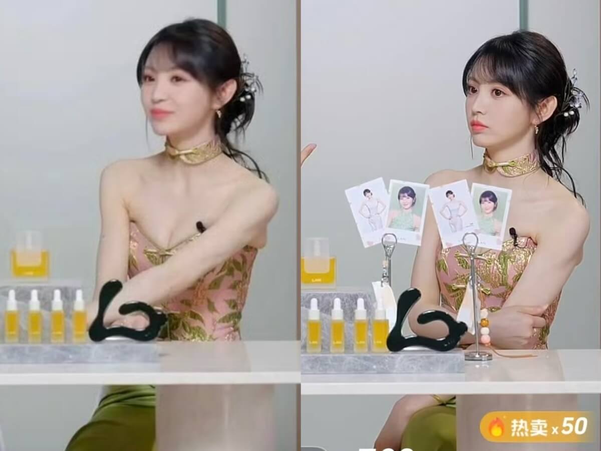 在重新開播之後,在她胸前做了一些遮擋,直播才能順利進行👇