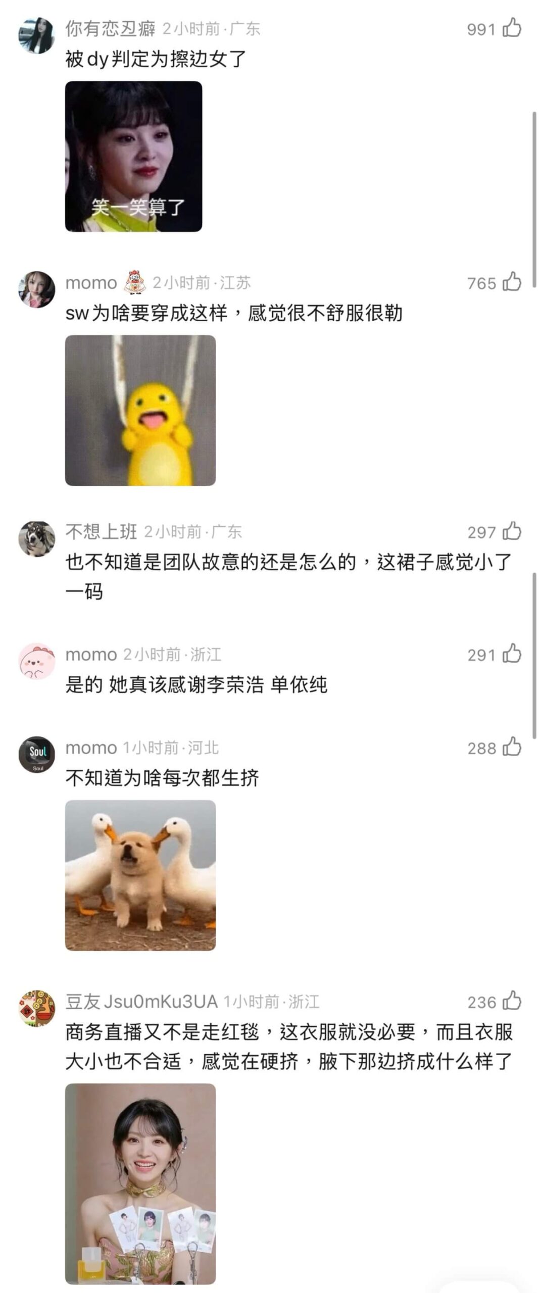 隨後,粉絲也開始炮轟起工作室,因為從直播畫面來看,可以清楚看見田曦薇的禮服明顯不合身,都這麼瘦了,後背還被勒成這樣👇