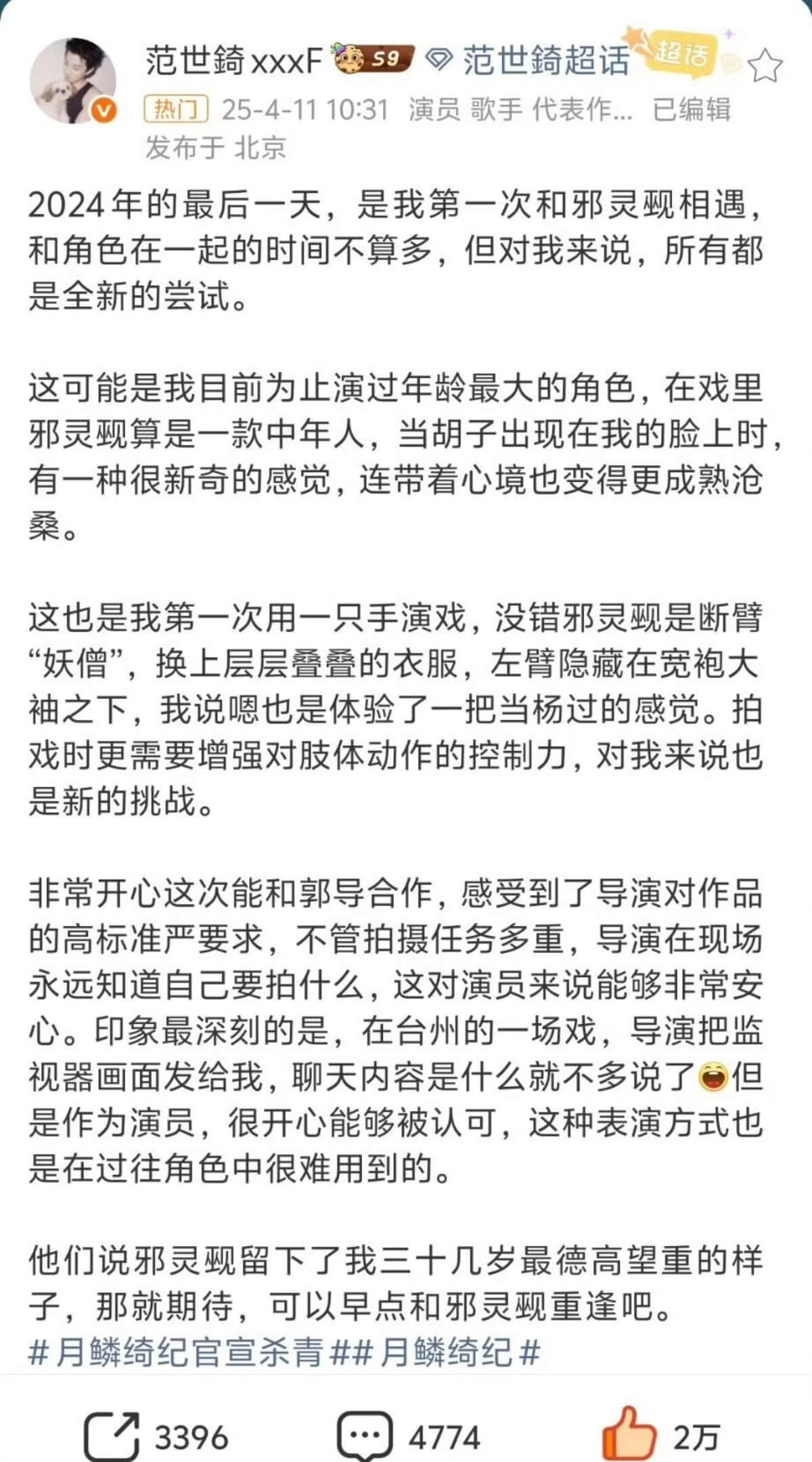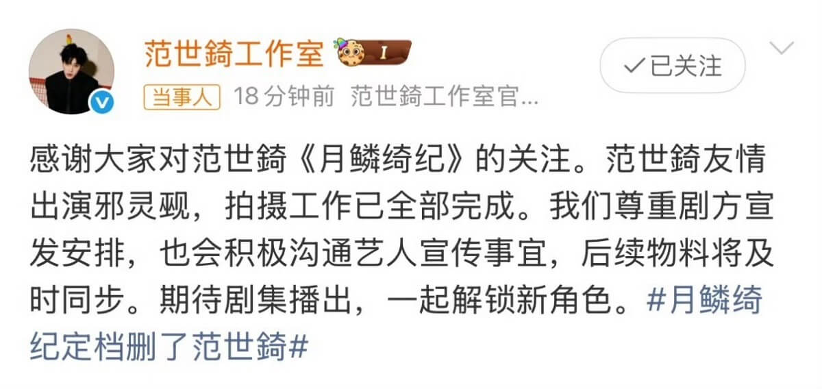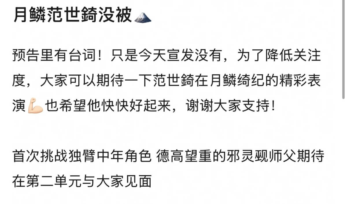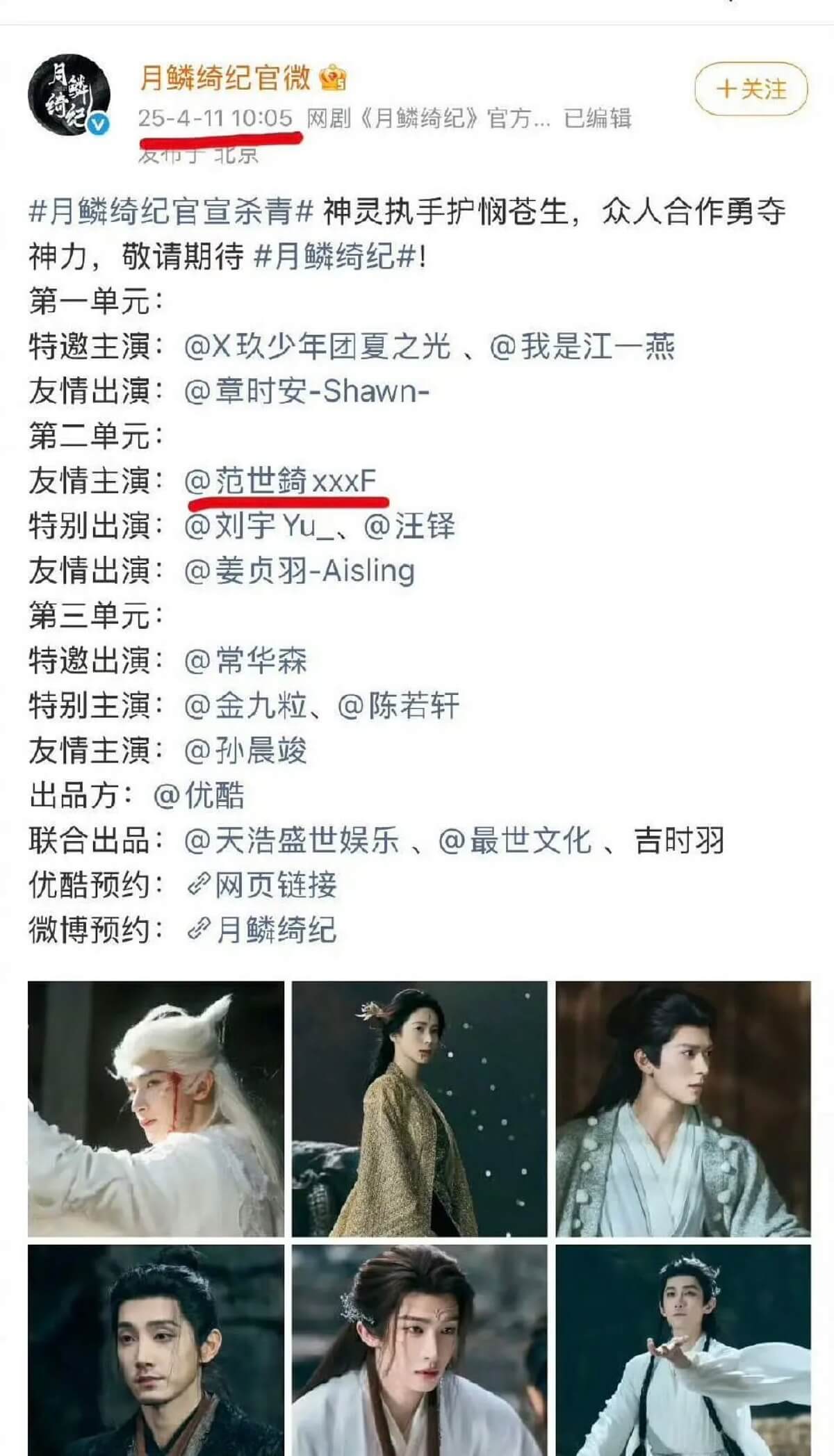 是噠來看看,最初官宣陣容,提到了范世錡是特別出演👇