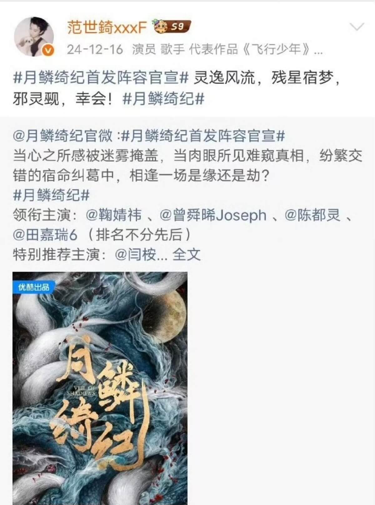 除了鞠婧禕,網友發現這部劇還有另一個爭議,就是居然刪除了有份出演的范世錡?