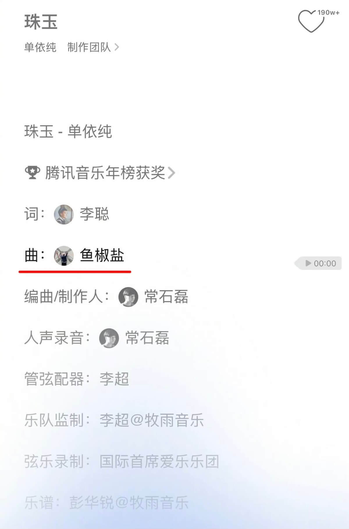 沒想到有網友發現,單依純代表作之一《珠玉》作曲人,也是她好友的魚椒鹽居然公開內涵李榮浩👇