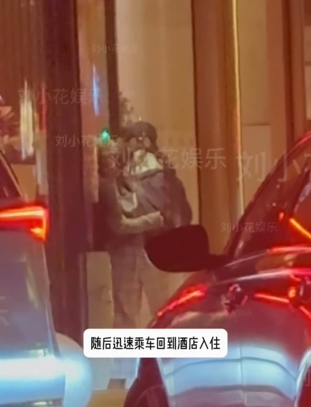 來看看,八卦媒體表示拍到了結束活動的熱巴,回到了下塌的酒店👇