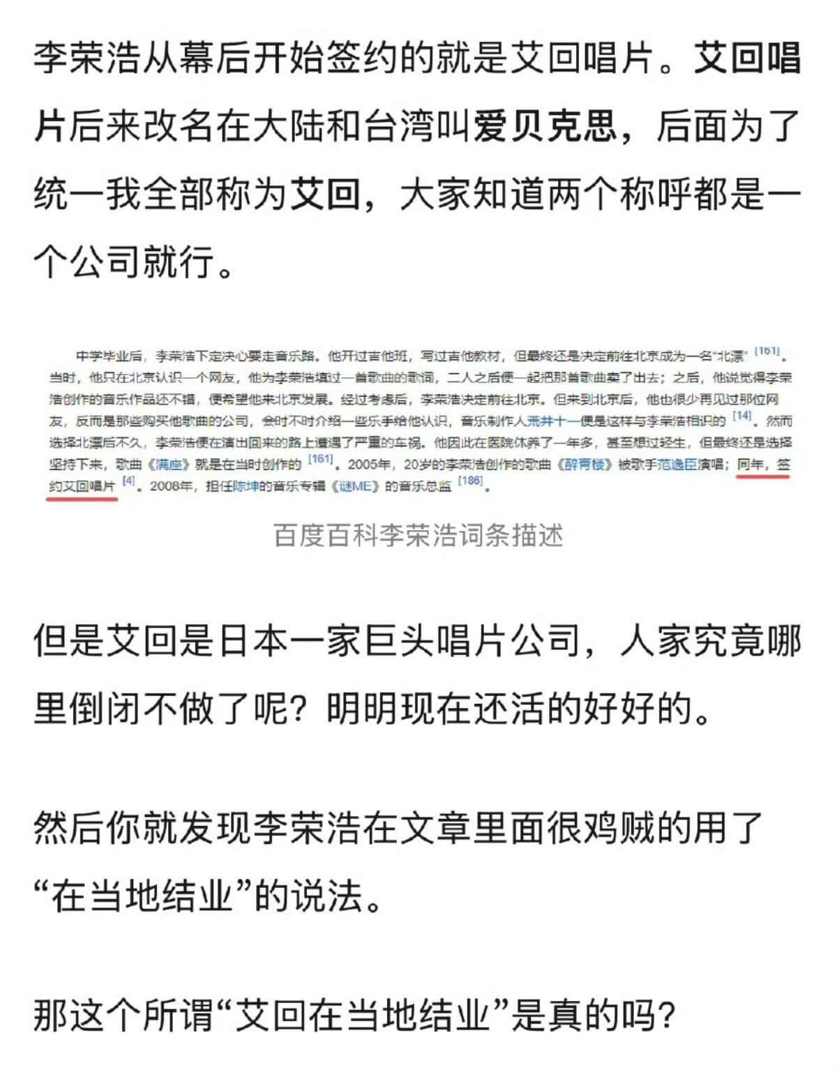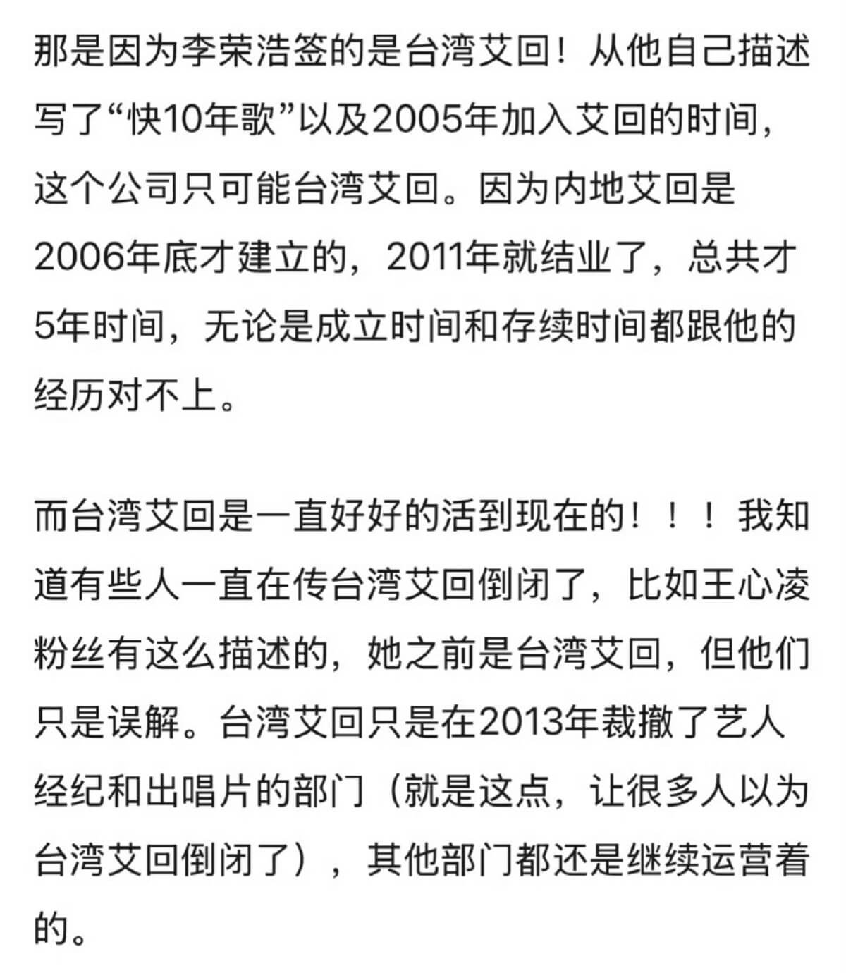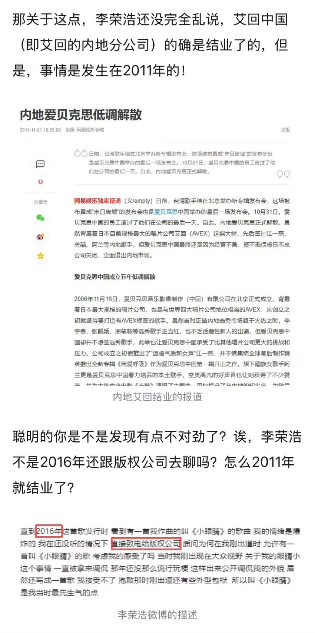 而中國的分公司早在2011年結業,但李榮浩文中提到2016年還要求公司去處理版權!