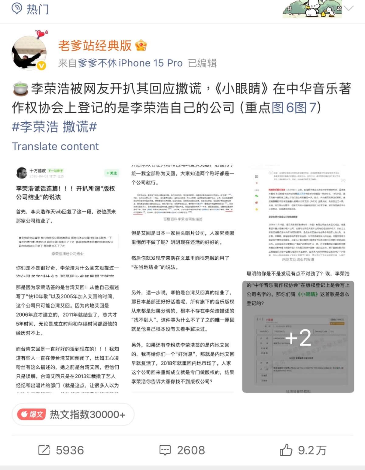 閱讀量近6億!網友扒細節指控李榮浩說謊!國外創作人也指控抄襲!工作室回應!