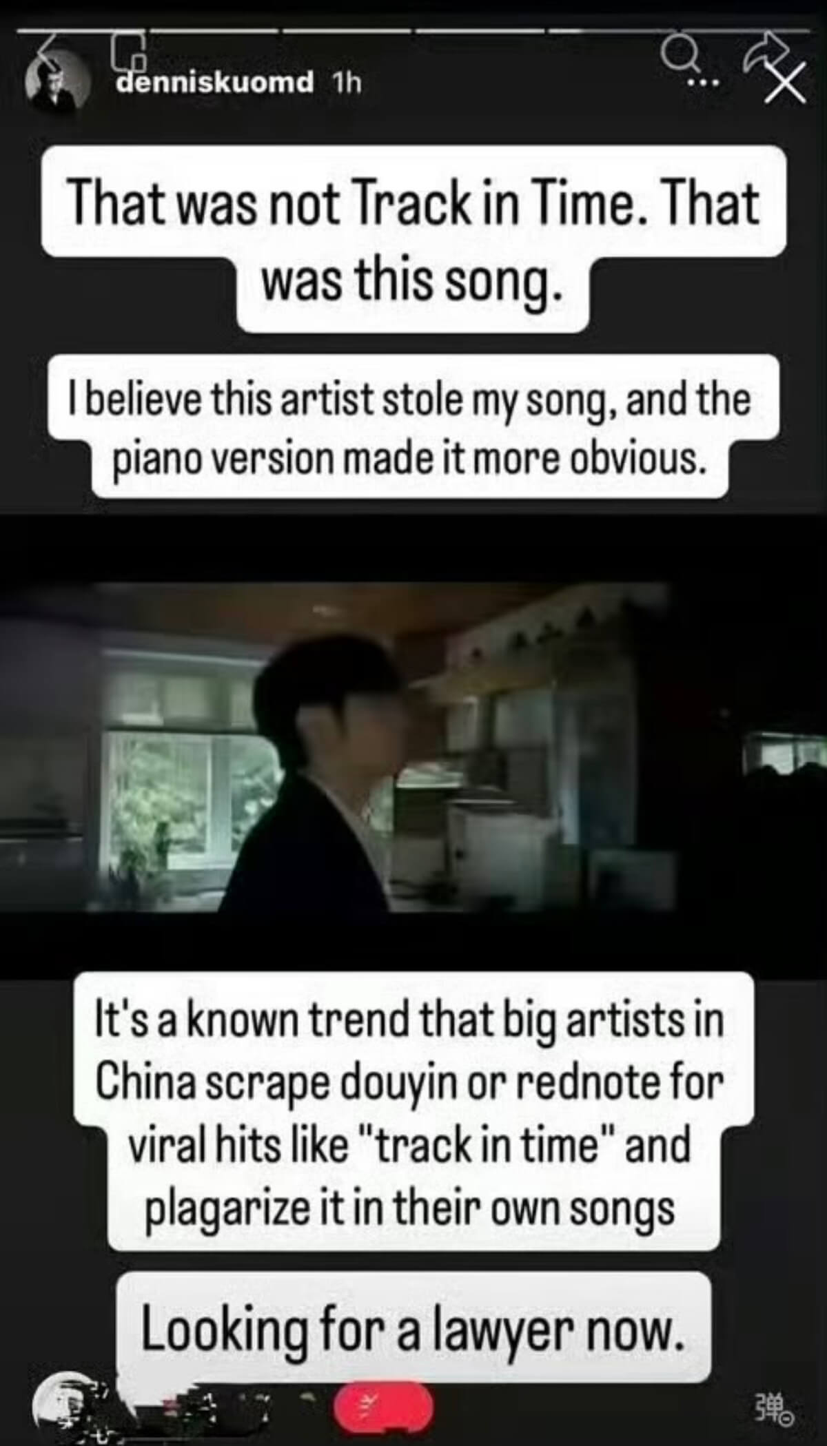 另外,有網友發現國外創作人Dennis發文指控李榮浩2024年的《戀人》前奏,抄襲他2021年的原創鋼琴曲《Track in Time》,並表示已找律師處理👇