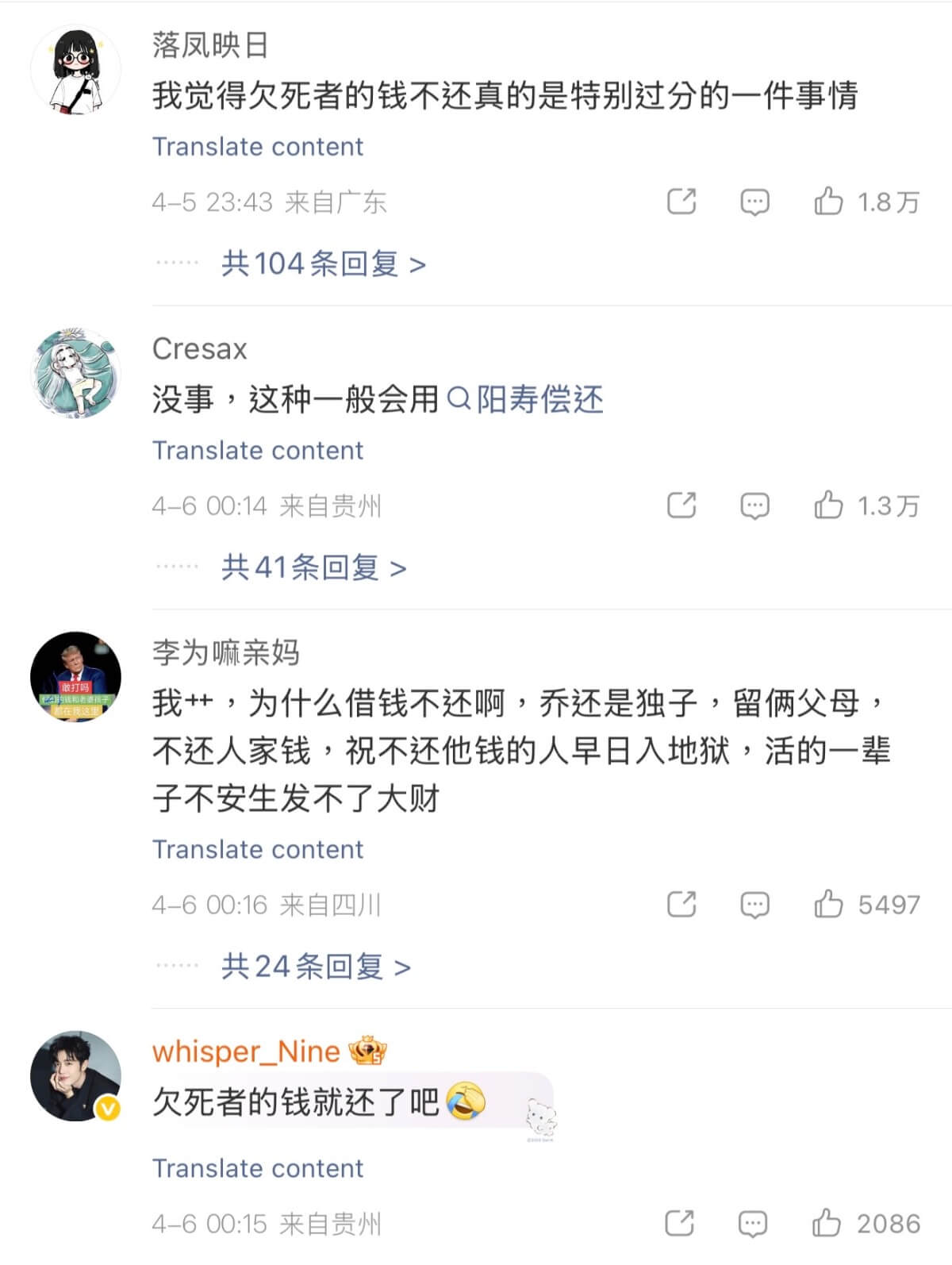 評論區都在喊話,希望欠債的人可以早日還錢給喬任梁的父母👇