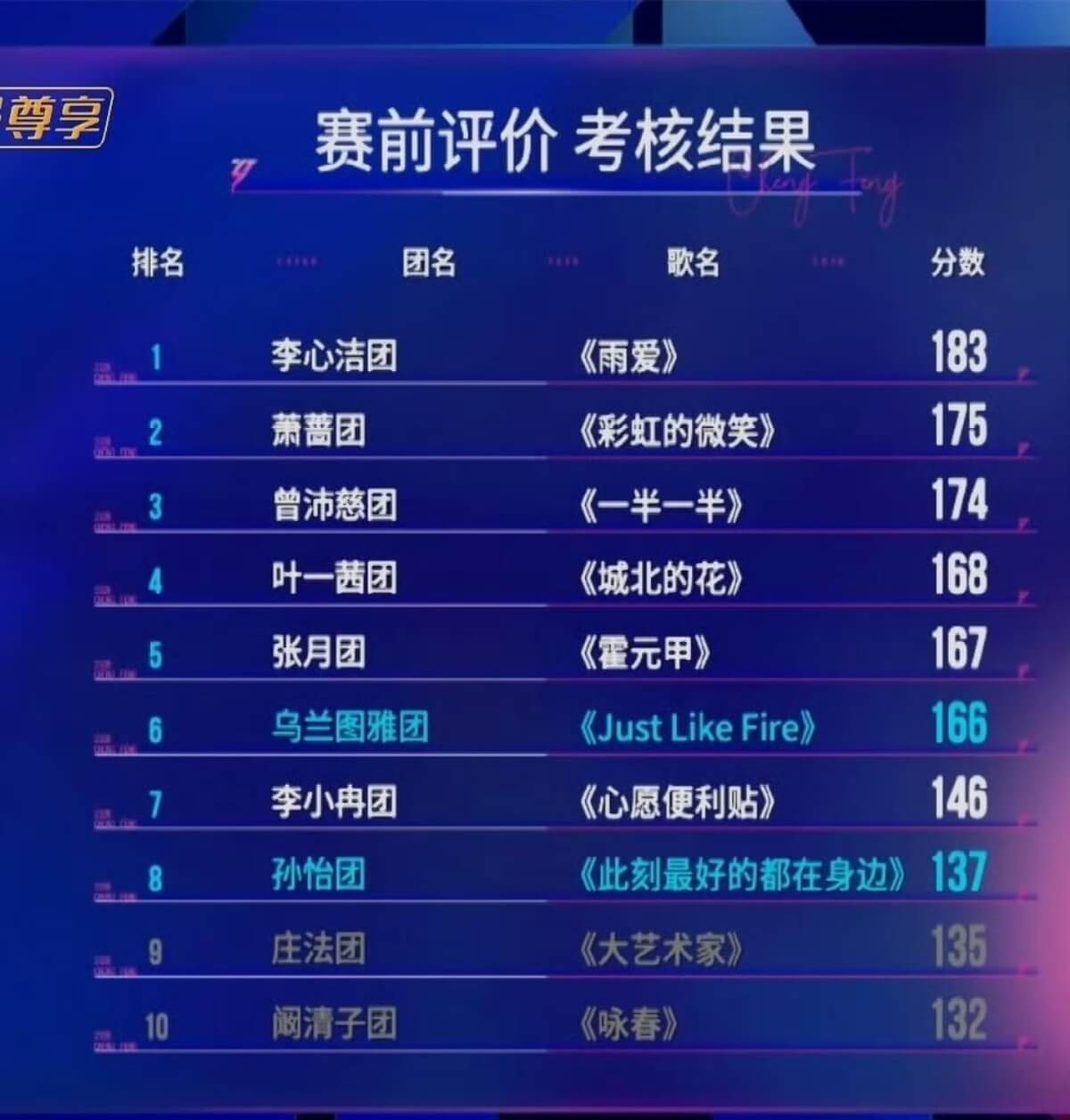 當然,除了好笑也有好聽的,尤其是奪下最高分的李心潔團的《雨愛》、曾沛慈團的《一半一半》等,也迎來了極高評價!現在就依據排名,從排名最高的開始聽起吧!