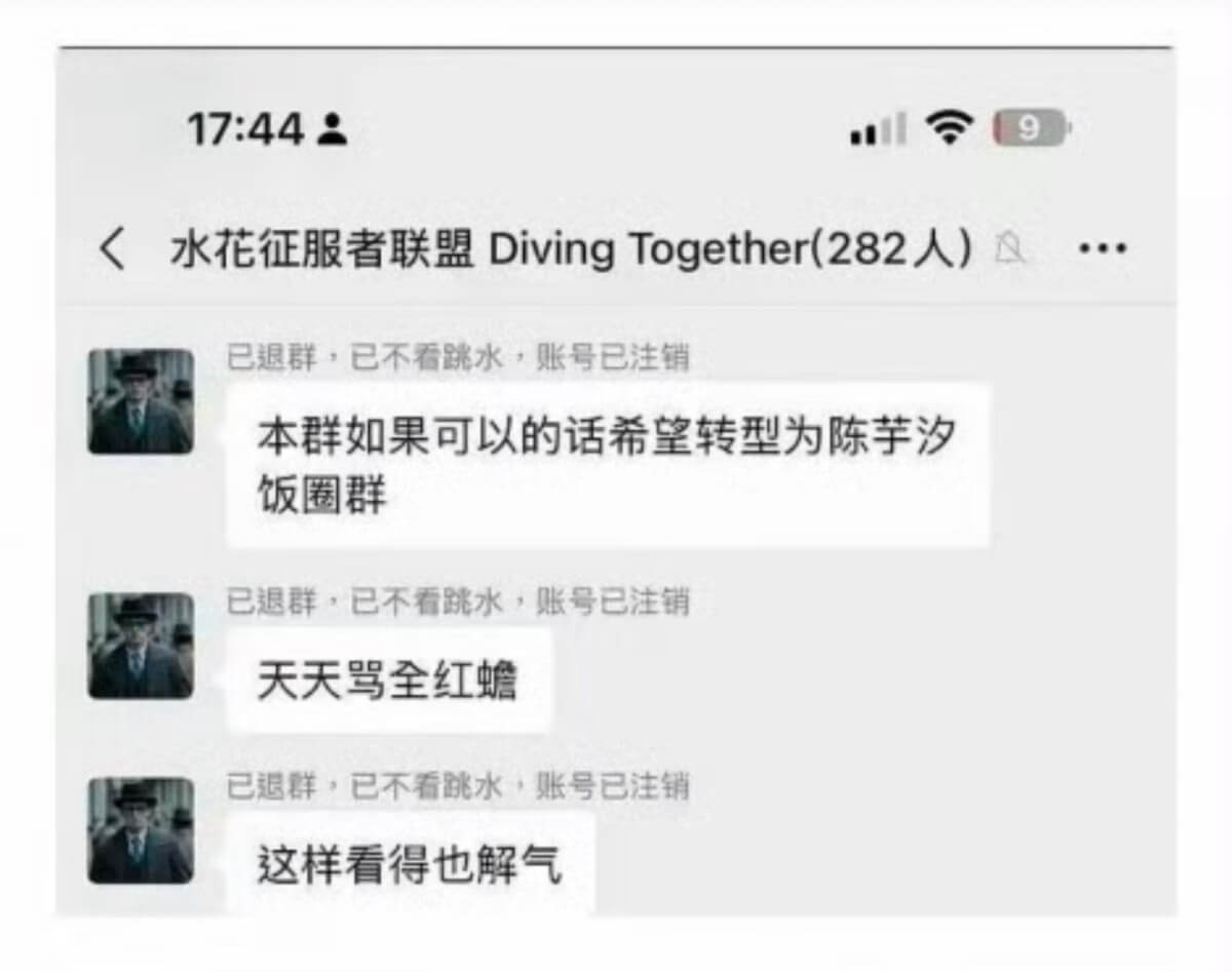 究竟怎麼一回事?這裡完整科普一下!就在4月初,多名網友在各個社媒平台發帖,表示陳芋汐等運動員在一個長期網暴和辱罵全紅嬋的微信群中,並且還牽出跳水隊多名運動員、裁判及央視跳水專項記者,集體默許網絡暴力的爭議風波。