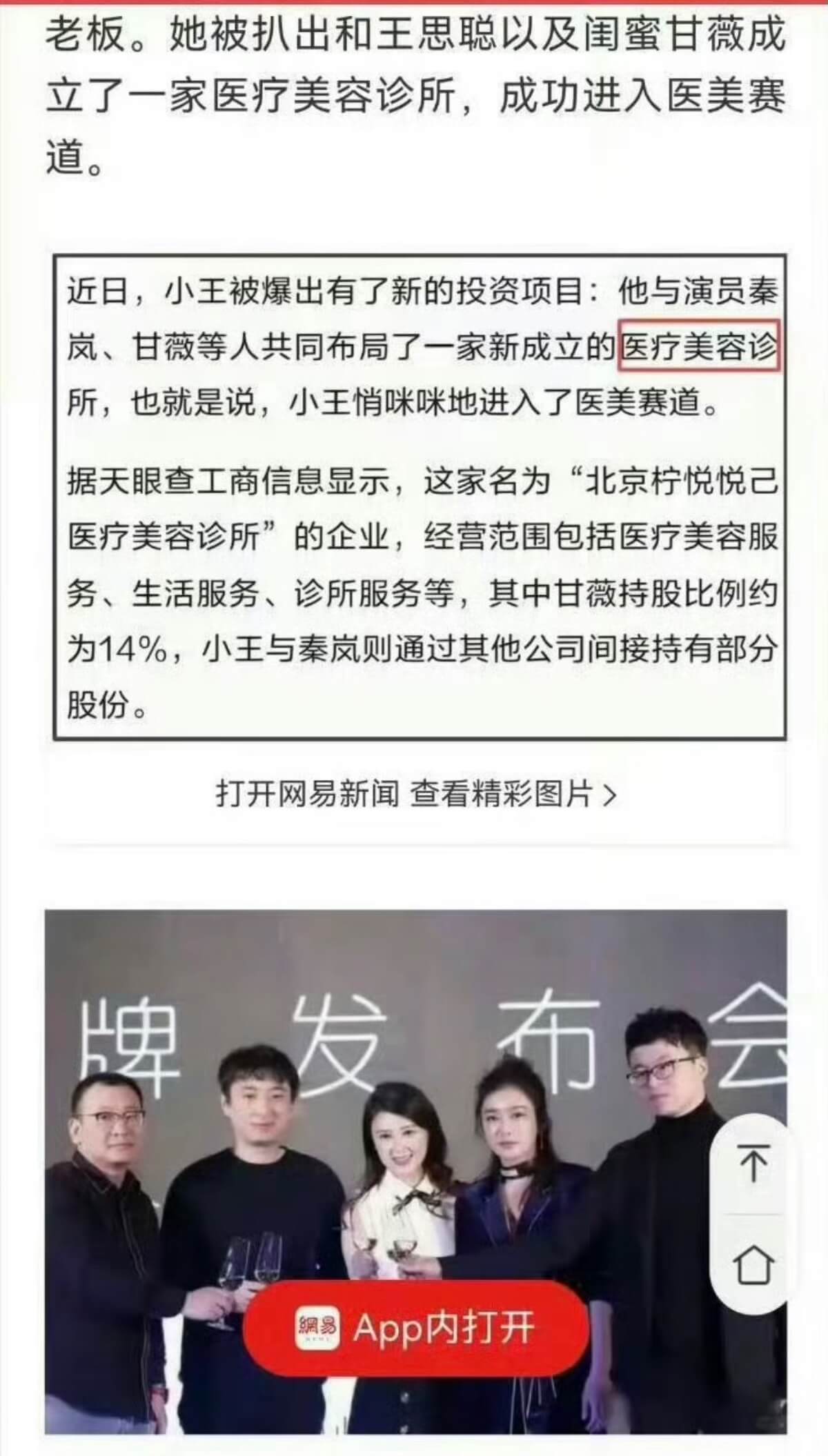 隨後再牽扯出杜華的好友⋯秦嵐!之前金子涵發文中曾提及王思聰!而王思聰和秦嵐合作過醫美診所,後來被發現有很多不正規操作👇