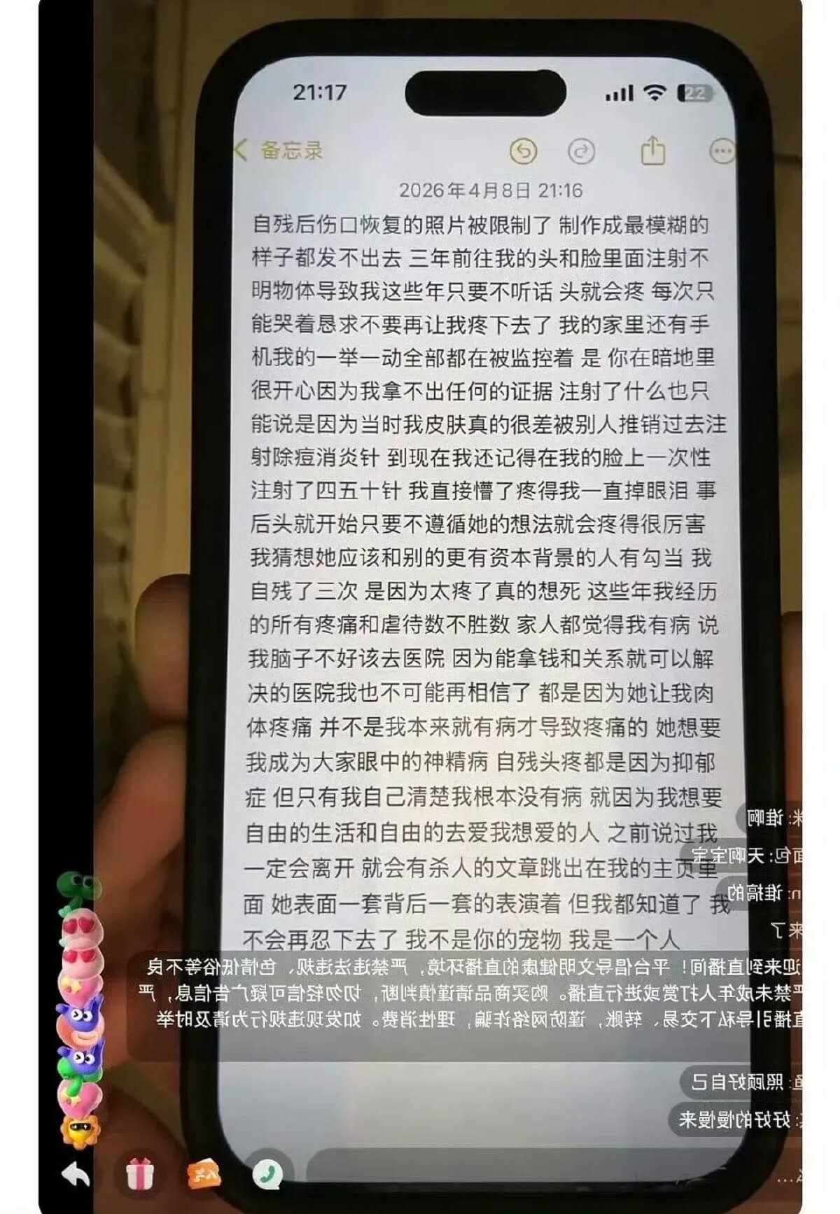 沒想到9號深夜,她直接開直播曬充滿自殘傷痕的手臂,疑似向網友求救!