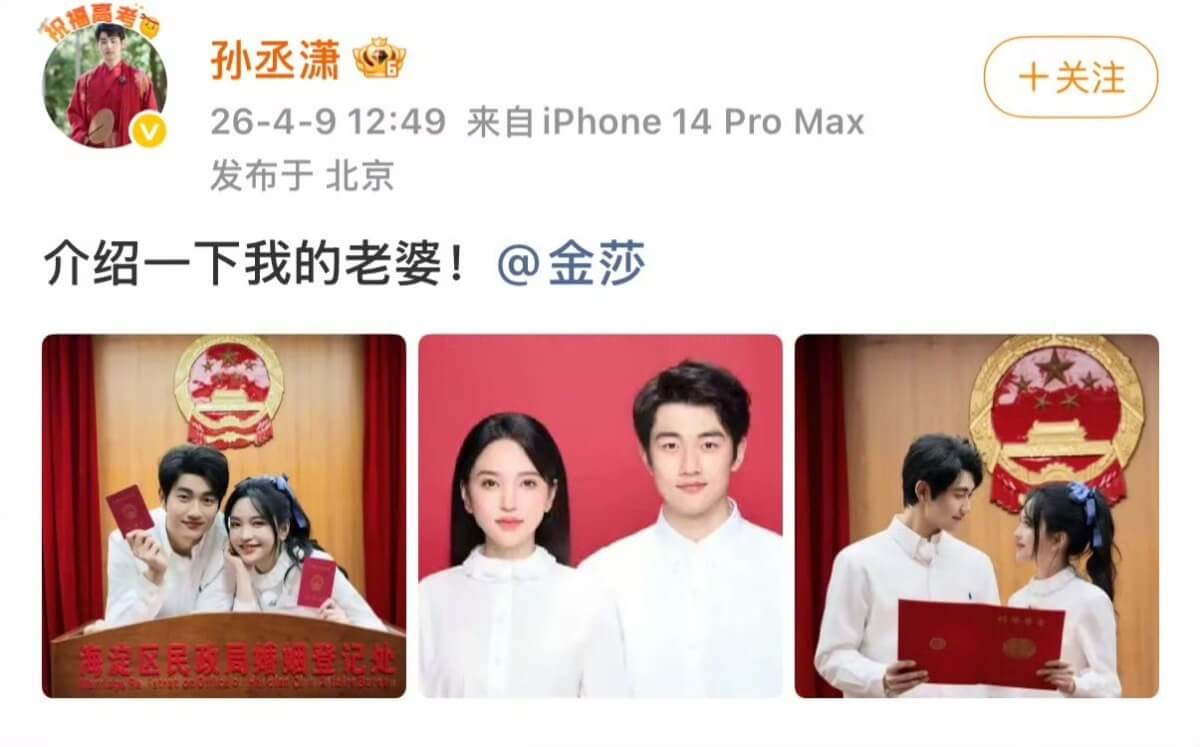 媽啊~原來早就領證結婚了!!!是噠,都知道金莎和孫丞瀟這對「姐弟戀」很出圈,甚至曾被稱作是「母子戀」!孫丞瀟在25年底求婚成功,當時收穫了不少祝福!
