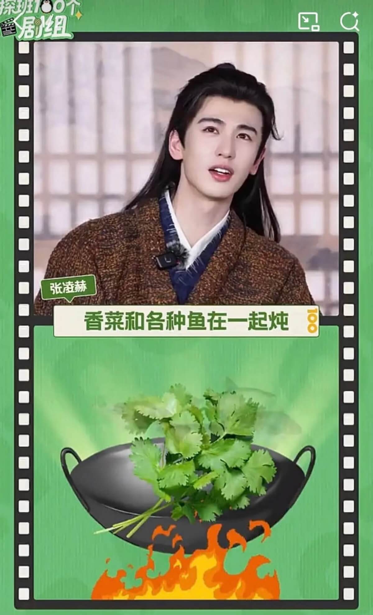 而田曦薇發的清蒸鱸魚居然放香菜,這其實也很少見,而張凌赫家鄉那邊就願意放香菜,甚至去年過年張凌赫家的菜都放了香菜👇