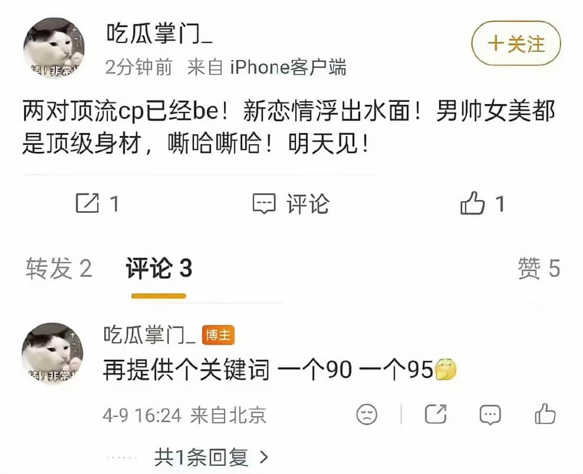 嗚哇!居然是黃景瑜和王玉雯???是噠,有狗仔在9號預告,表示有兩對頂流CP BE了,但又有新戀情,給出的線索是一個90、一個95👇