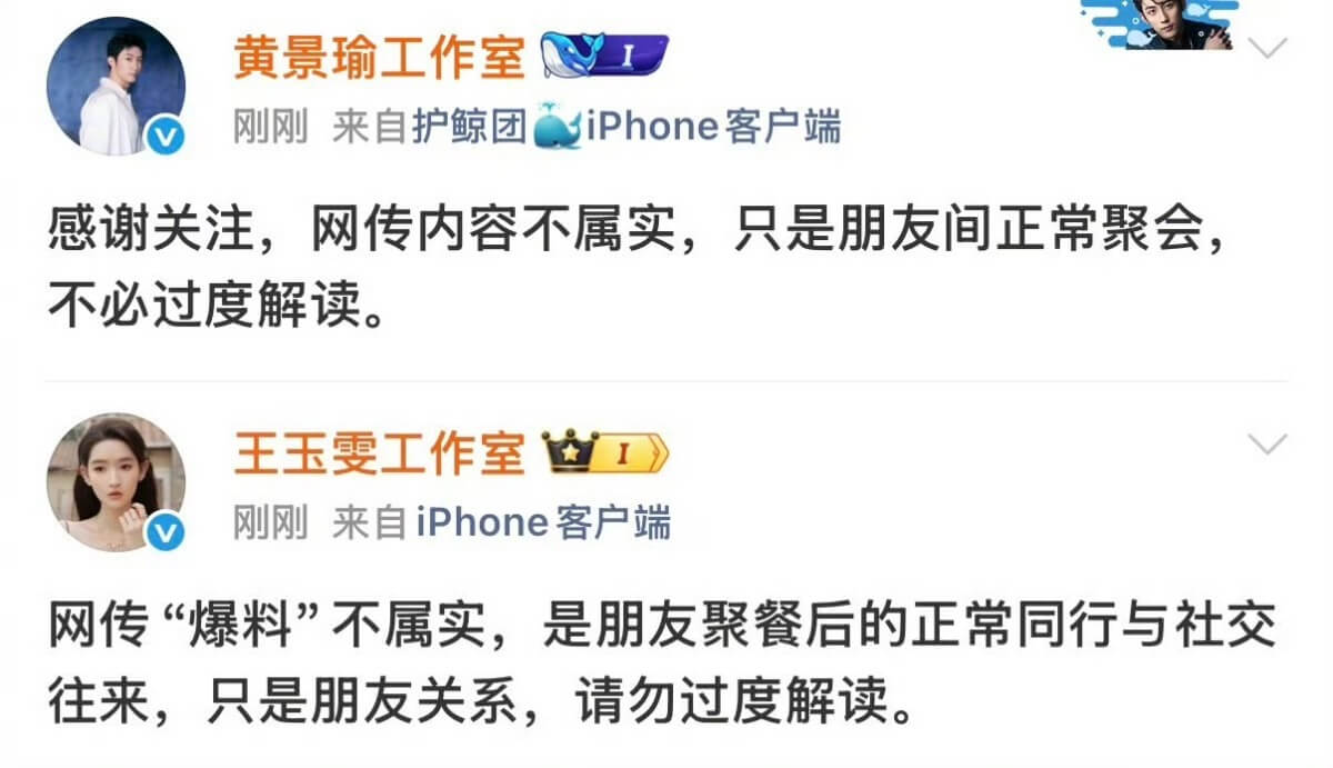 究竟真相如何?熱搜爆了之後,雙方工作室火速回應闢謠,說是正常朋友聚會…