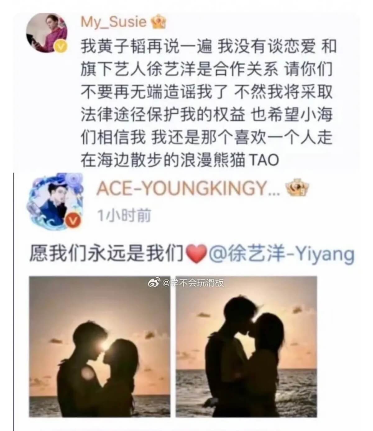 這次究竟可信度如何,還有待時間證明!不過也來看看網友盤點的內娛4大出圈打臉聲明!第一就是全網都知道,但正主一直否認的:黃子韜&徐藝洋👇