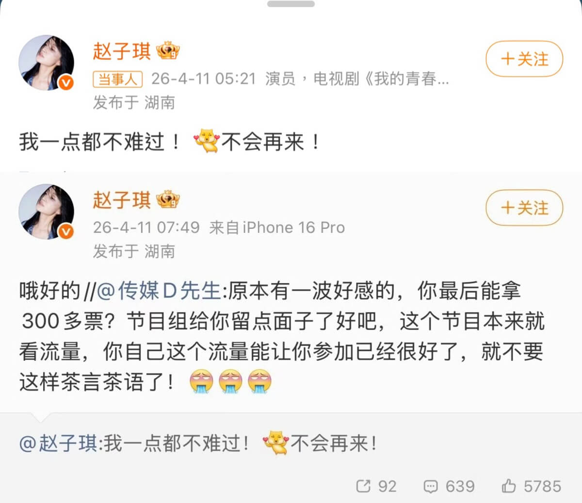 她之後也發文表示不會再回去浪姐👇