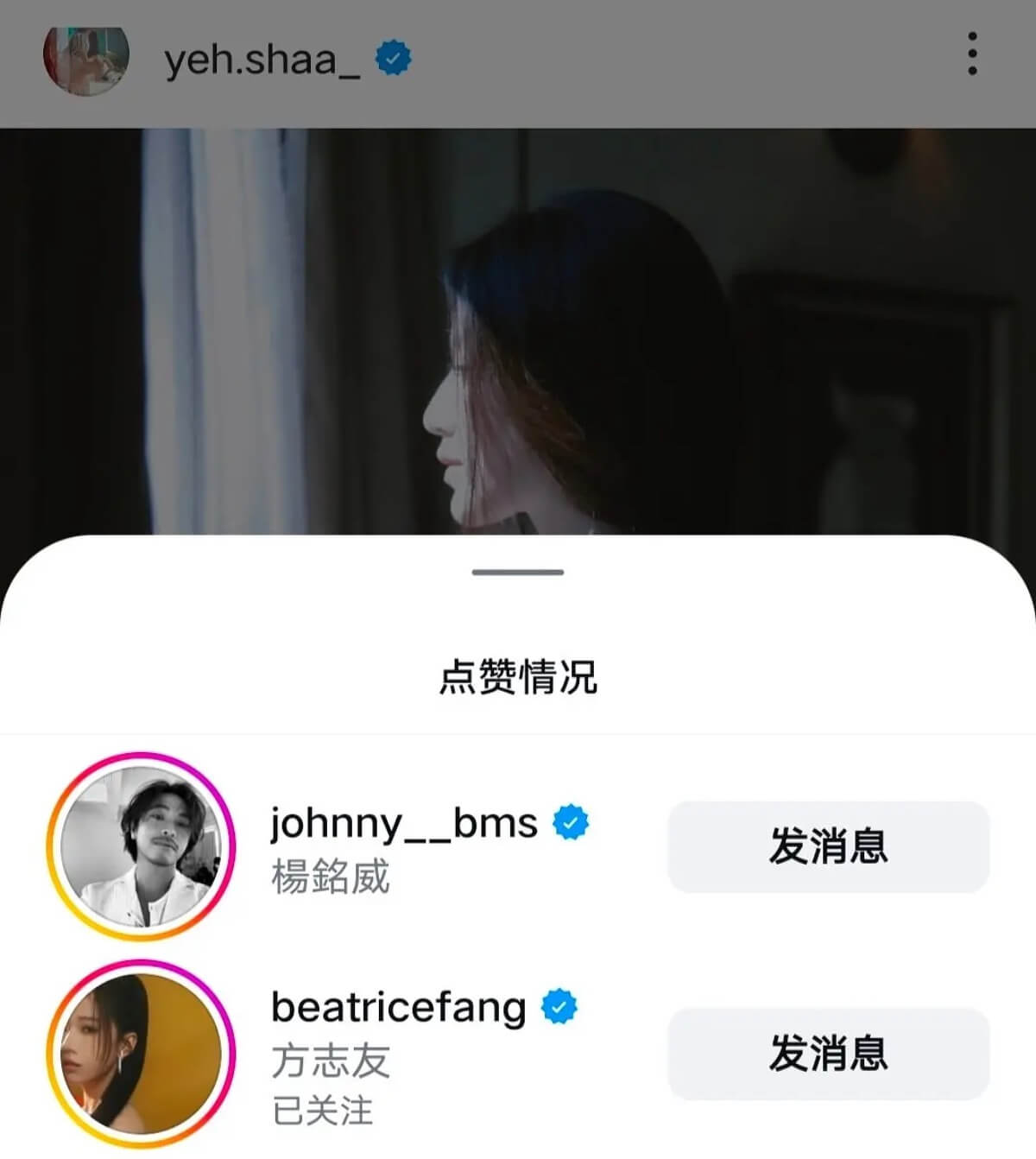 葉舒粉絲澄清這只是歌詞,而且女方也沒回復柯震東,柯震東也解釋自己只是路過留言而已,如果造成困擾十分抱歉!但隨後網友發現,葉舒華和柯震東朋友圈不斷有交集,包括男方好友也點讚葉舒華ins👇