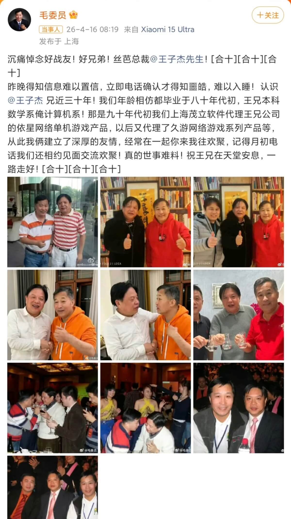 這裡科普一下王子傑,他在2003年創立久遊網,代理《勁舞團》等遊戲,註冊用戶超7億,成爲初代網遊標誌性人物。隨後在2012年創辦絲芭傳媒,打造SNH48女團,開創中國養成系偶像模式,捧紅鞠婧禕、李藝彤等藝人,獲“中國遊戲產業最具影響力人物”“上海市白玉蘭紀念獎”等榮譽。