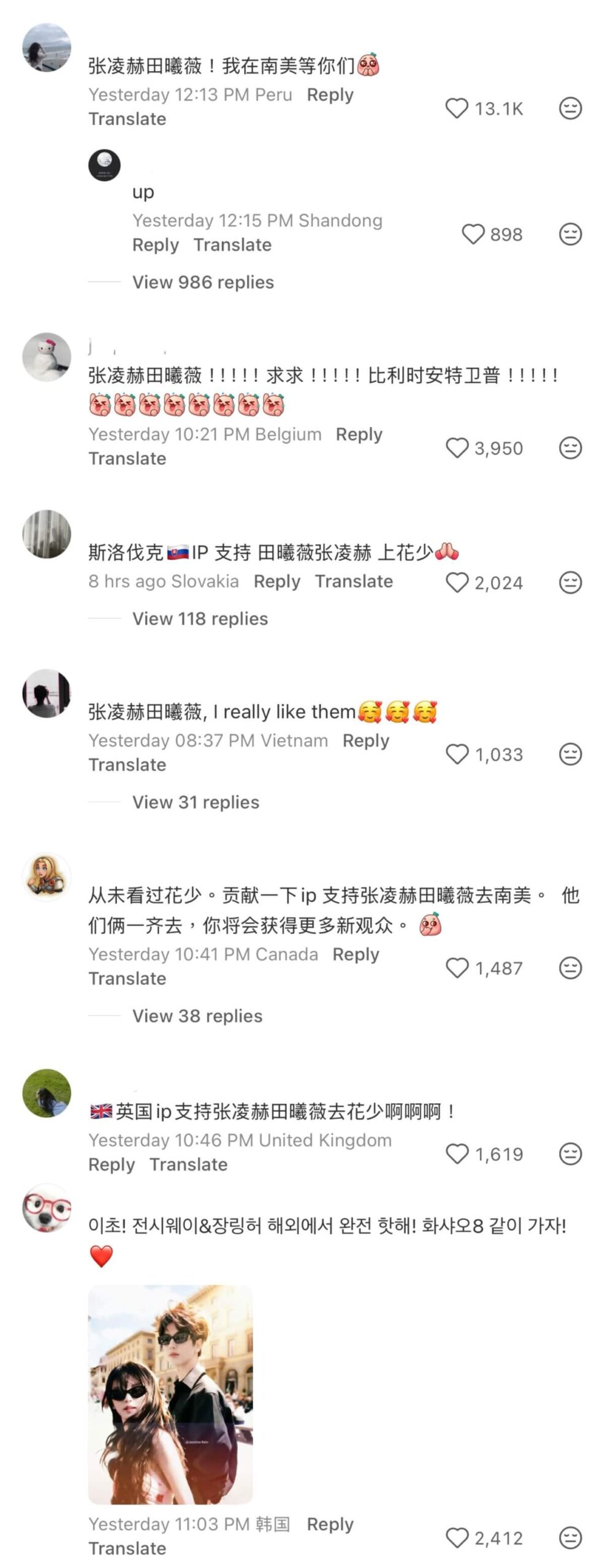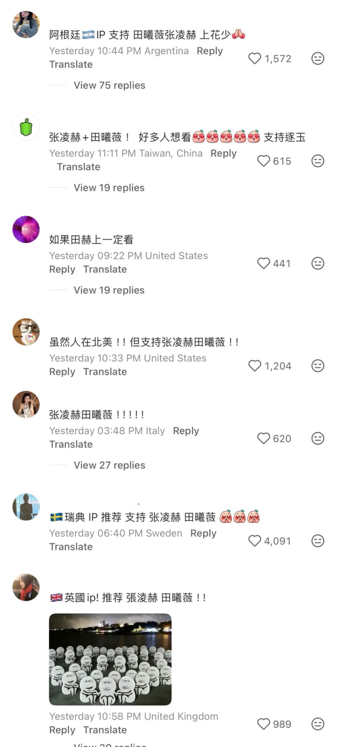 評論區更像是聯合國總集合,破4萬條留言,全都是來自世界各地的粉絲留言,從東南亞:馬來西亞、越南、泰國等,到亞洲國家如日本、韓國,澳大利亞⋯甚至遠到連西方國家如英法德義也來報到⋯這海外人氣真的太驚人了👇