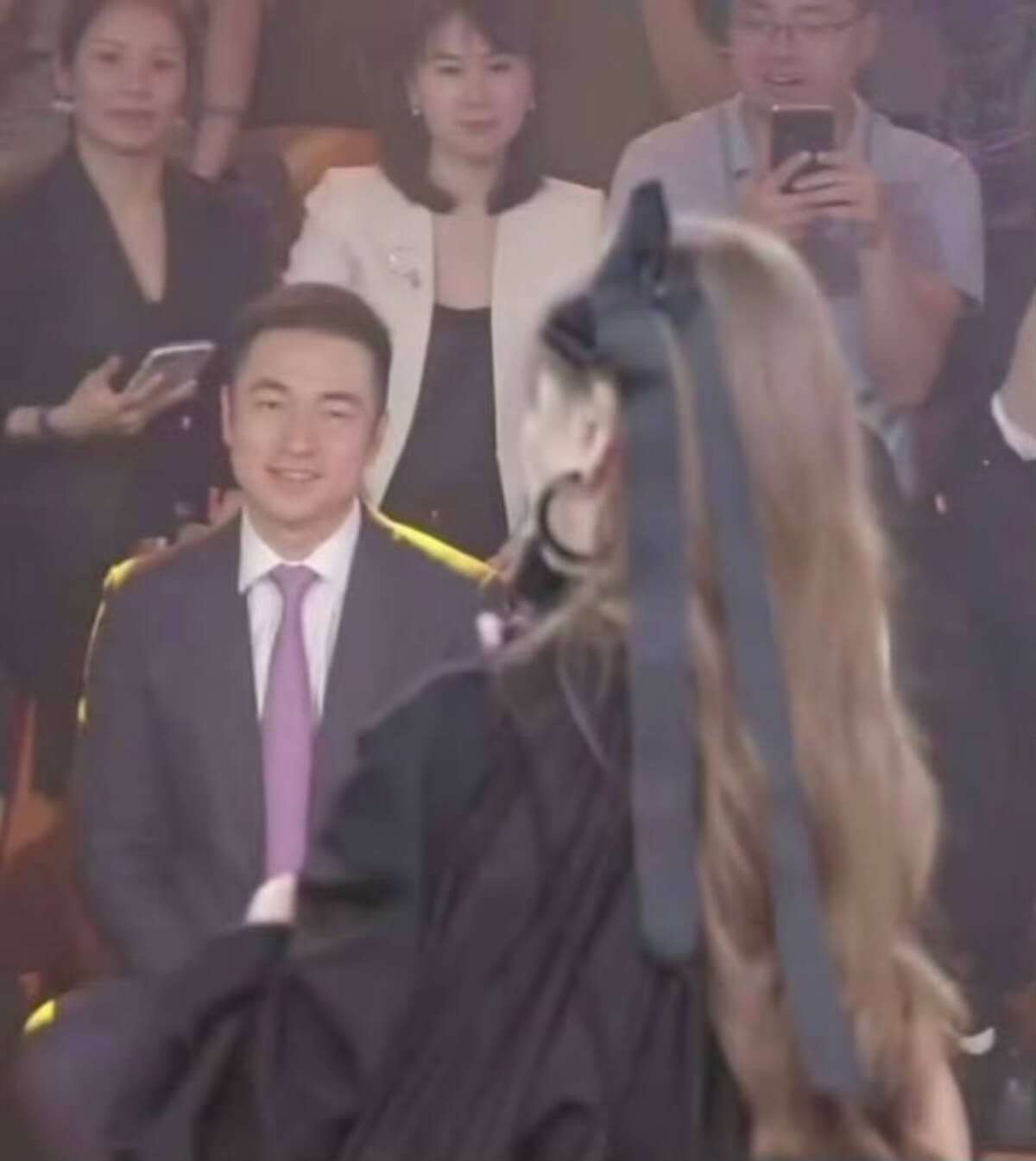 網友發現就連深圳的地產大亨,也就是鴻榮源的總裁賴俊霖也出席了這次活動,就坐在張凌赫身邊!