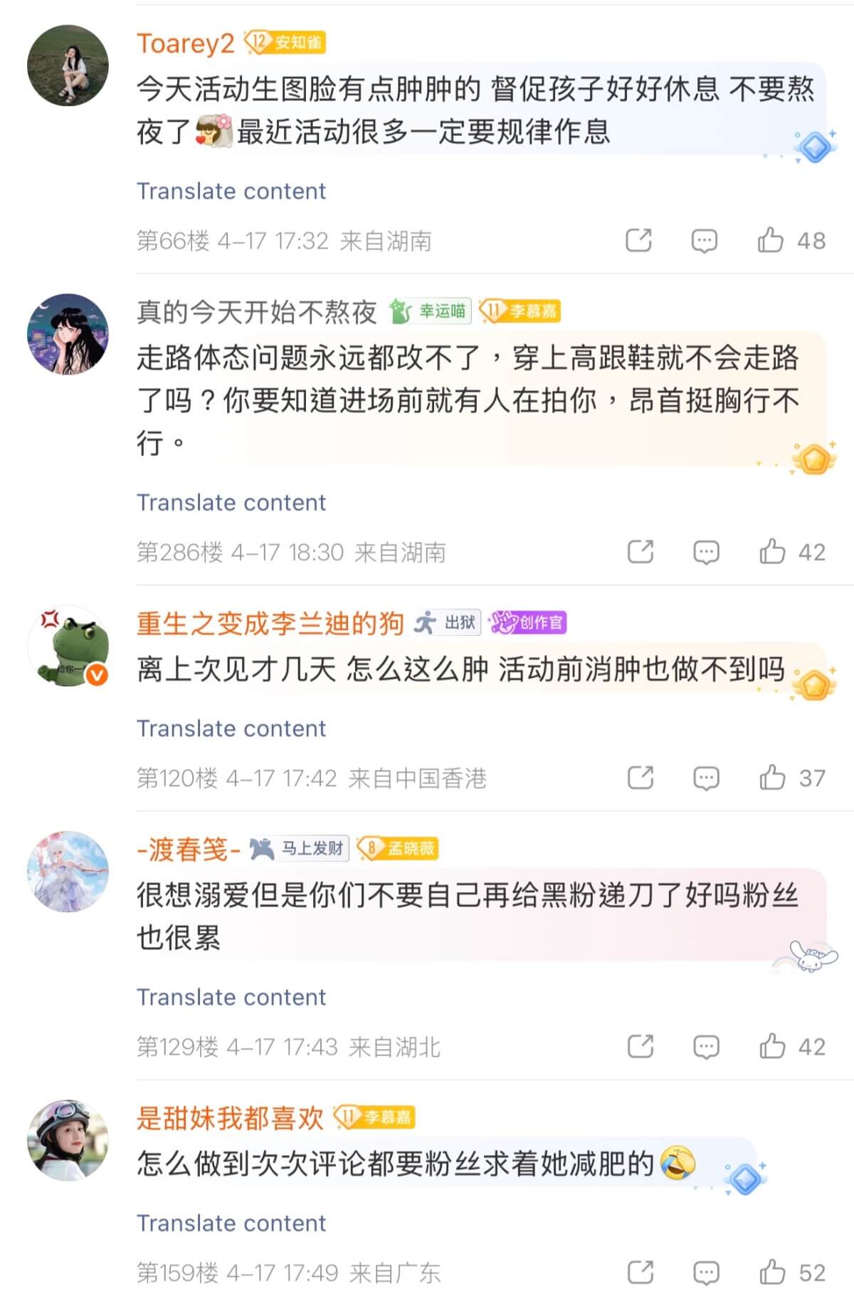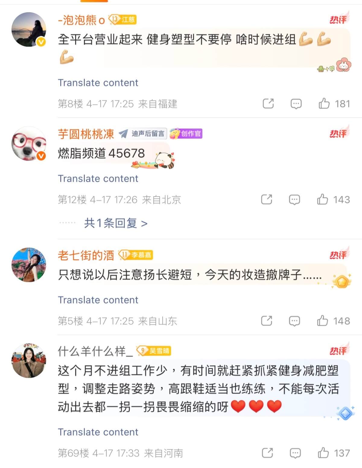 這次不僅網友在線開嘲,就連粉絲都忍不住下場了,工作室評論區幾乎都在喊她塑身減肥,還讓工作人員好好督促👇