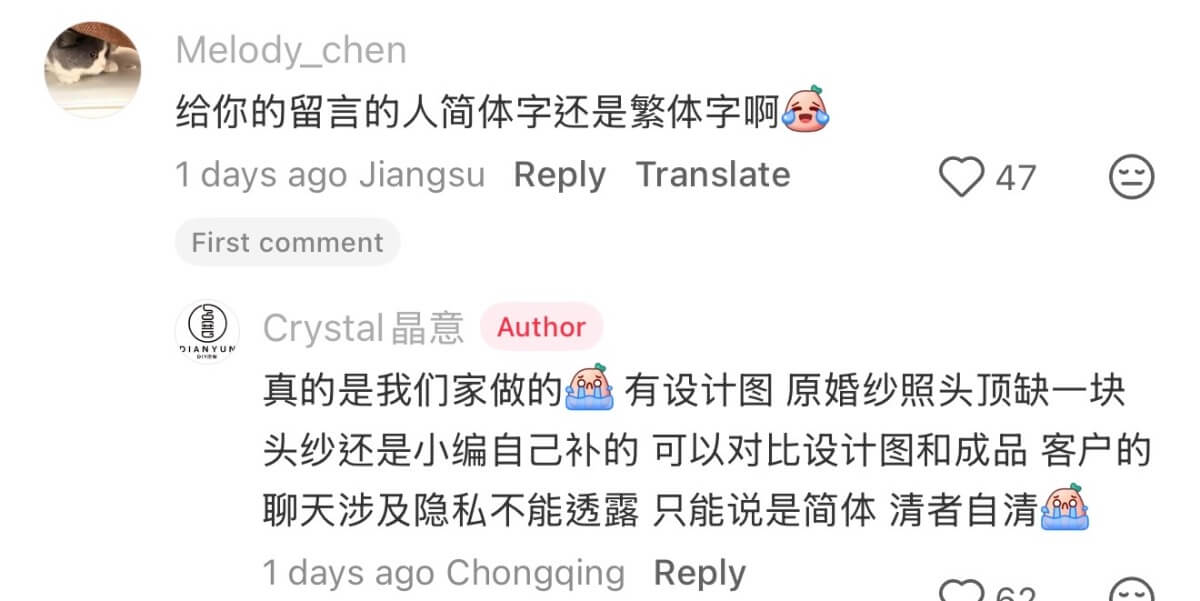 但商家表示來定制的留言是簡體字的👇