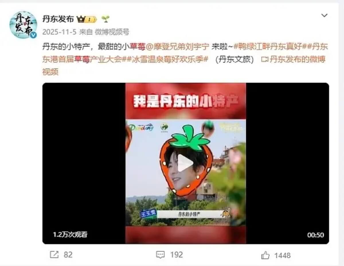 原因是劉宇寧一直在推廣自己家鄉的丹東大草莓,草莓季節時都會送給藝人朋友們👇