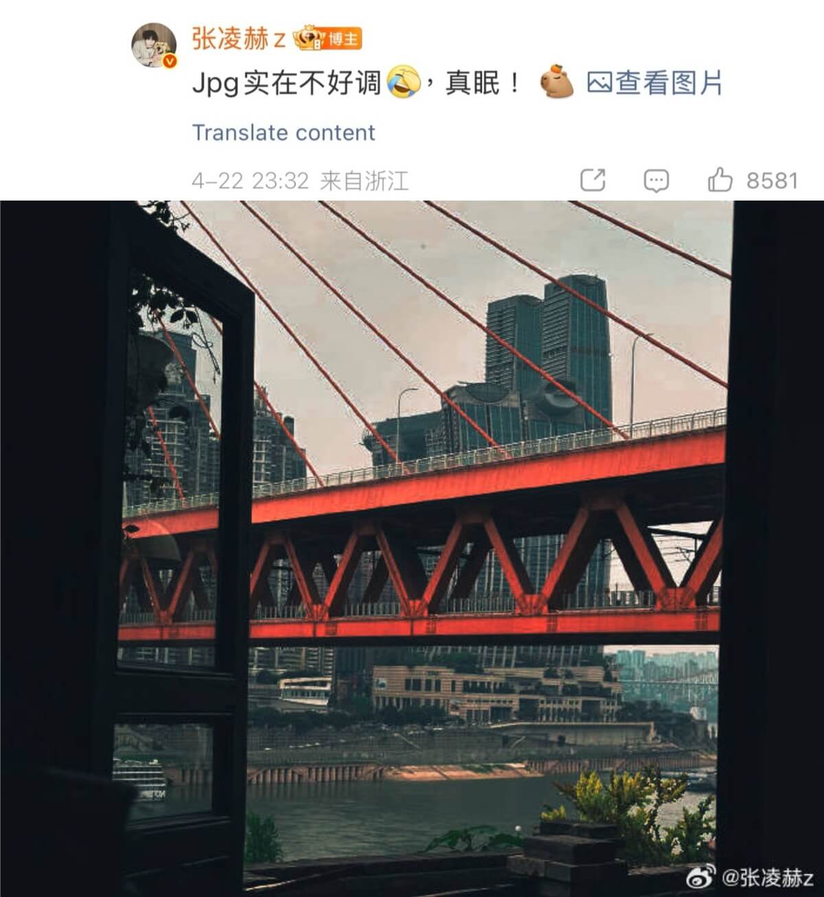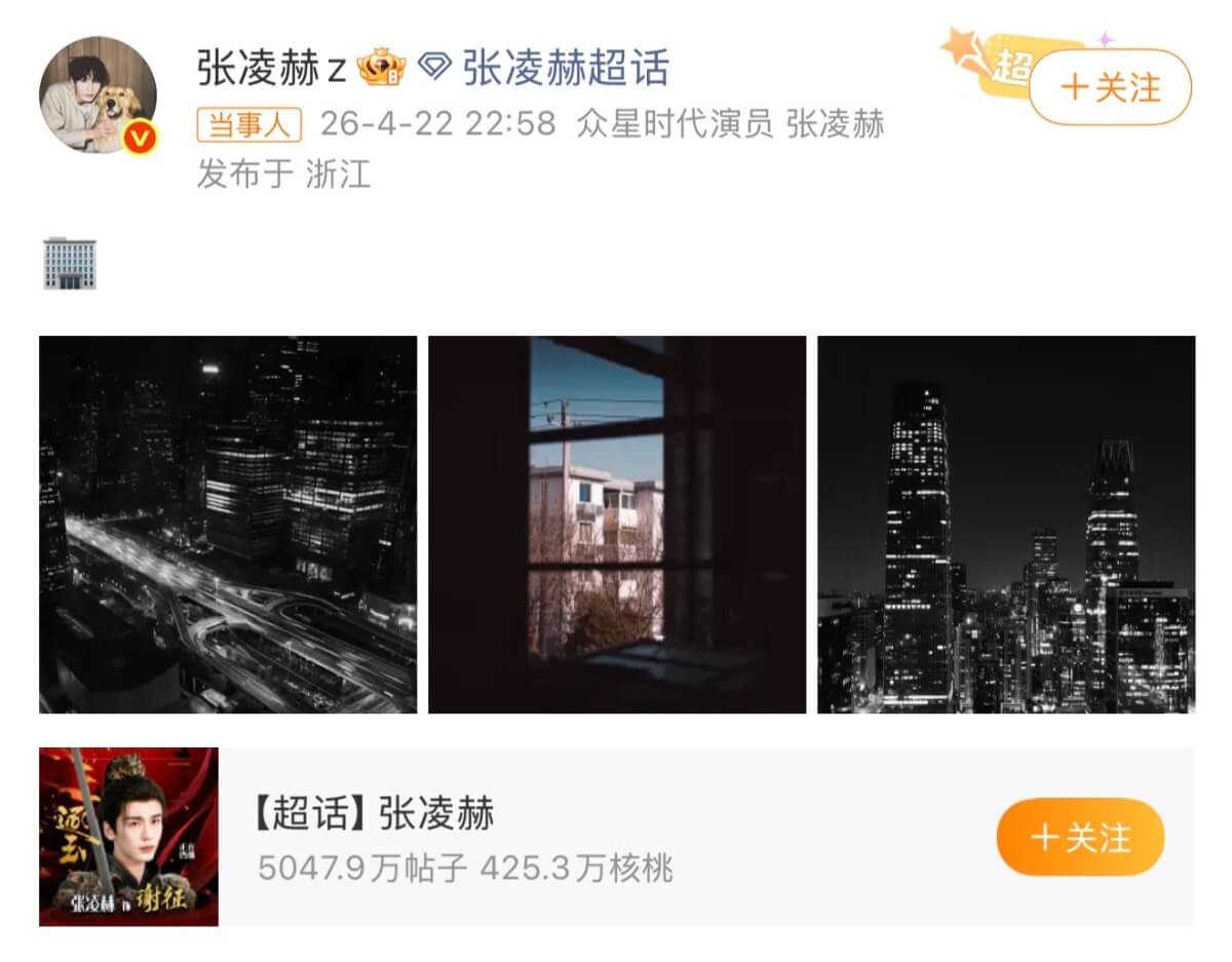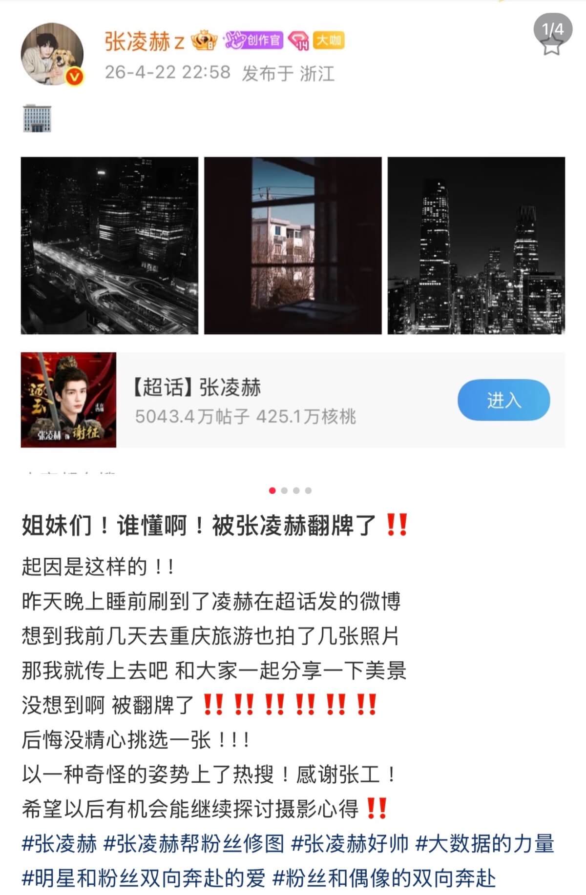 而在22號深夜,張凌赫又空降粉絲超話,分享了自己的拍攝作品👇