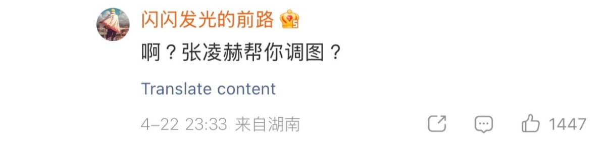 結果沒想到真的被張凌赫翻牌,順便還幫她修修圖,來看看👇
