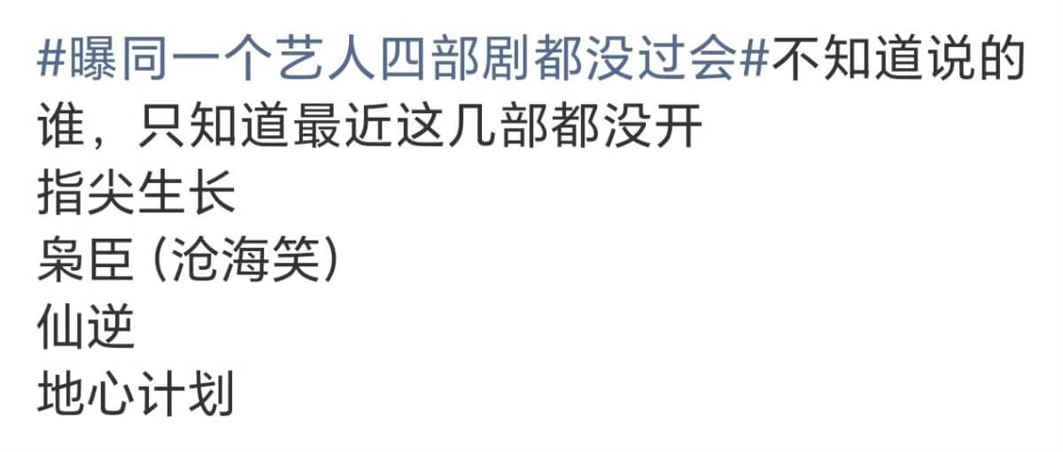 這裡複習一下,之前曾有瓜主爆料,有藝人連續四部電視劇被退貨👇