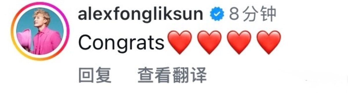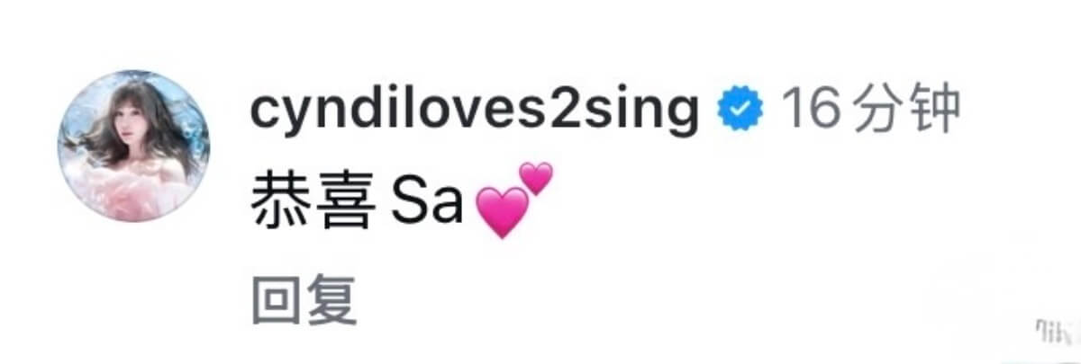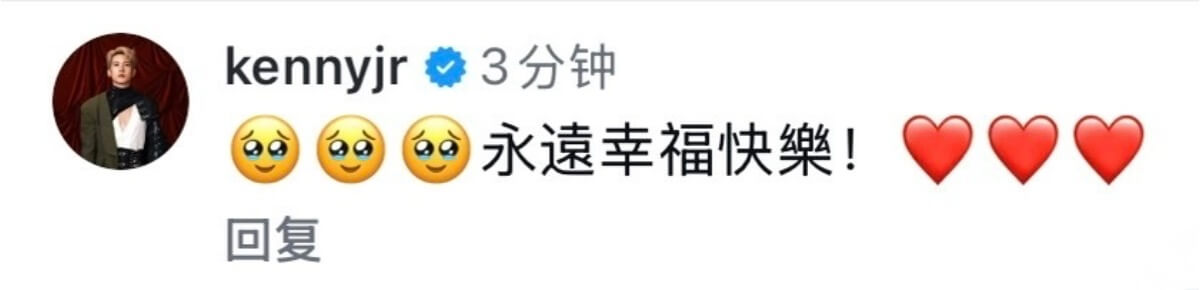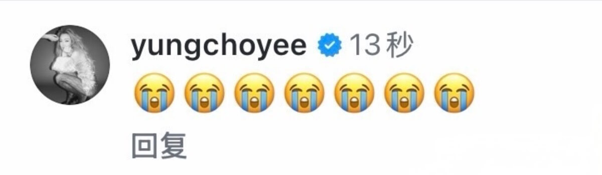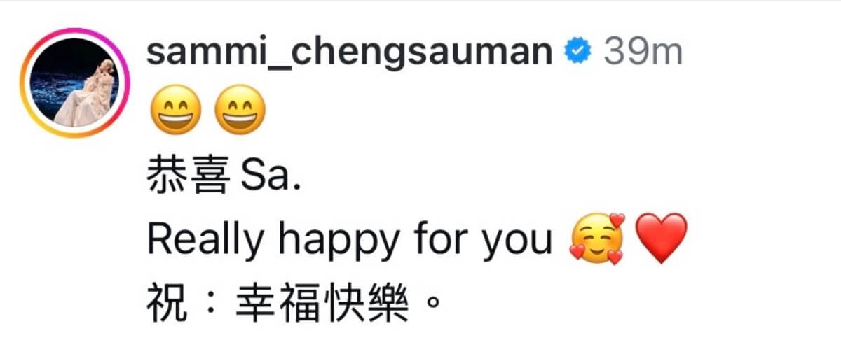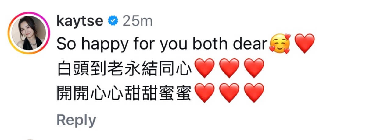有不少藝人紛紛在官宣ins下送上祝福,包括了連發7個哭泣表情的閨蜜容祖兒👇