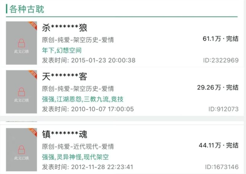 30號晚上,有網友發現P大的數部被影視化的耽美小說,全被晉江鎖文,目前無法點閱。