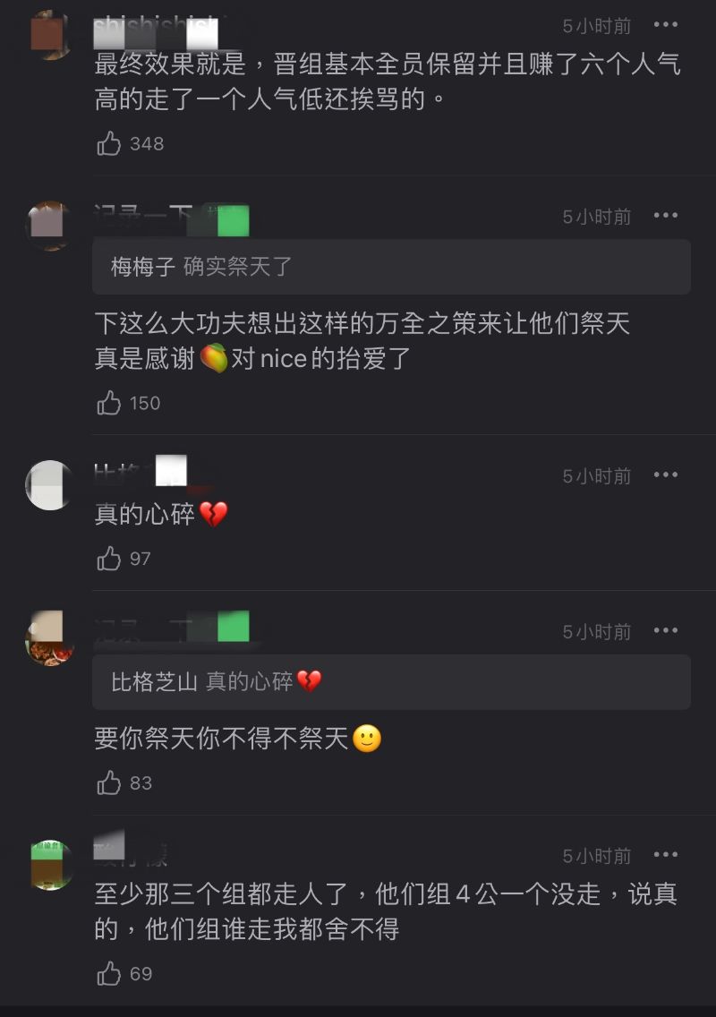 「最終效果就是,晉組基本全員保留並且賺了六個人氣高的,走了一個人氣低還挨罵的。」