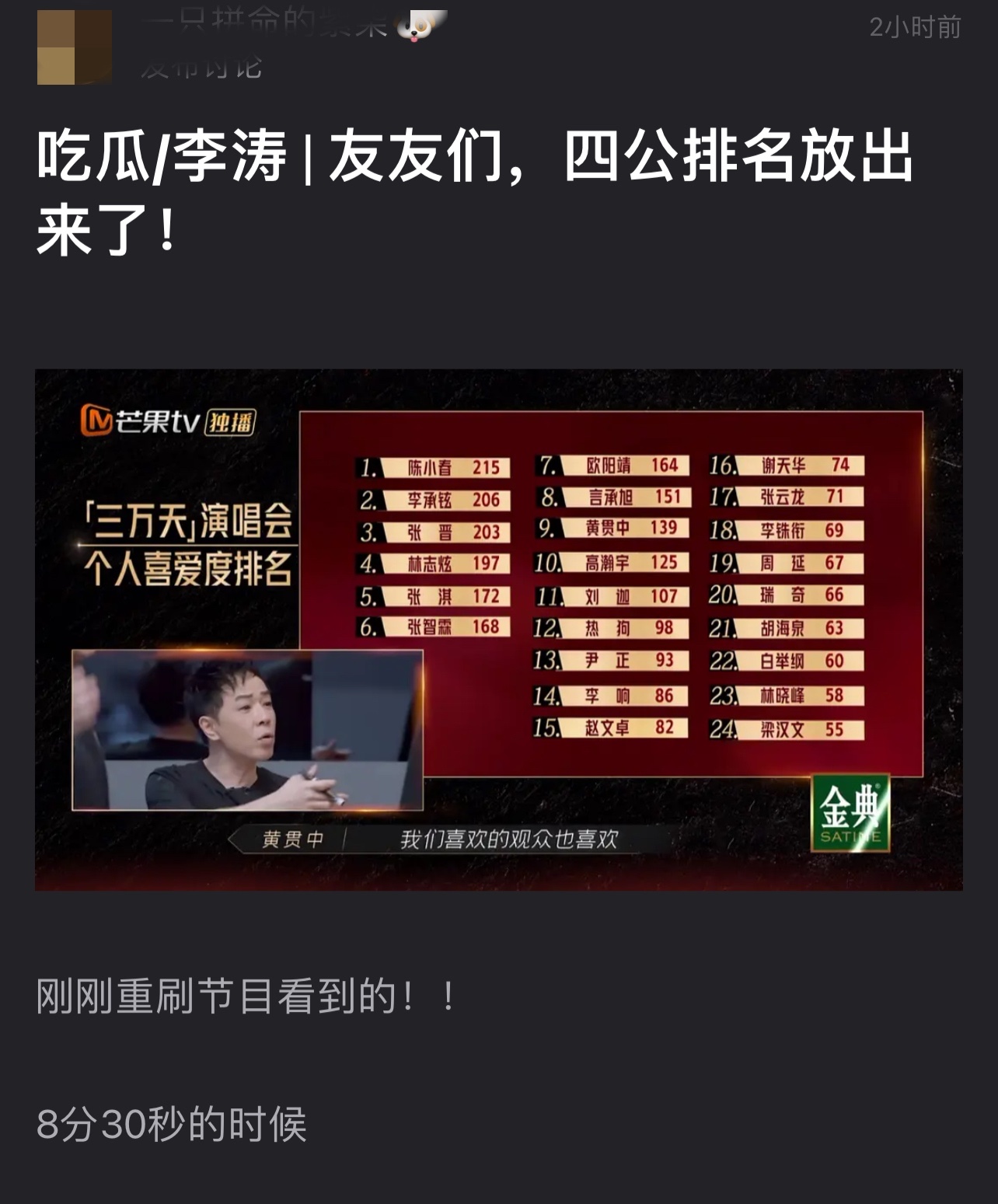 由於節目組並未公開完整的哥哥們排名,因此引起不少網友爭議!結果…有網友在傍晚時分發現,正片中居然出現了完整的四公個人喜愛度排行榜!
