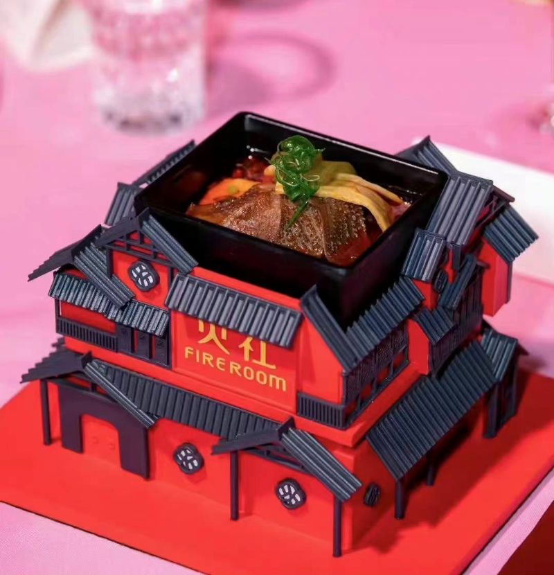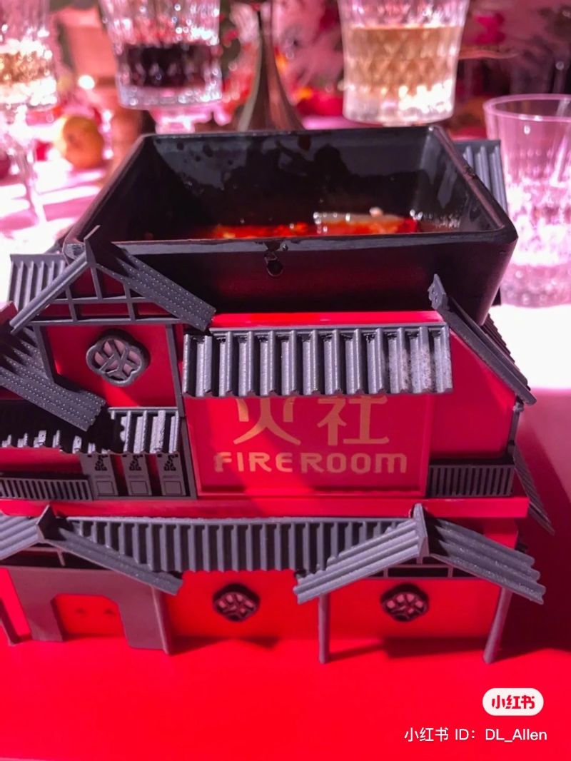 最特別的,是這道火鍋餐品采用了3D打印技術食盒,可以說將中式傳統與高科技結合,真是科技感滿滿!在盛著紅酒的高腳水晶杯中出現的“人生一爐”,看起來是不是更有味道呢?