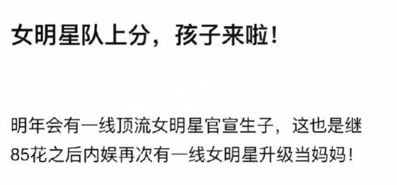 爆料者提到這是續85花之後,再次有一線女明星升級當媽媽~既然和85花並排,這代表這位女藝人必須是真頂流,畢竟85花中生過孩子的,可說都是真一線,像是趙麗穎👇