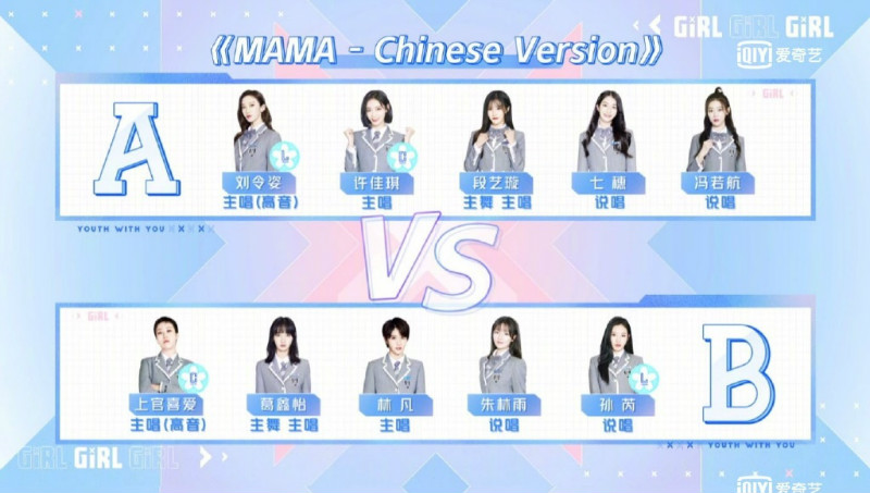 A組:劉令姿(隊長)、許佳琪(中心位)、段藝璇、七穗、馮若航