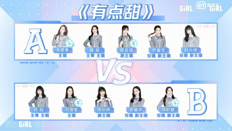 A組:徐紫茵(隊長)、虞書欣(中心位)、謝可寅、靳陽陽、陸柯燃