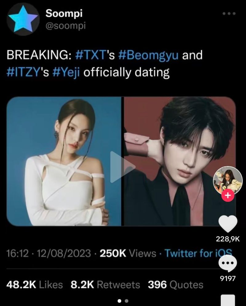啊咧~這烏龍也太大了吧?沒錯,近日有一則爆料帖,在抖音得到了極高的點讚,視頻爆料指出ITZY黃禮志&TXT崔杋圭官宣戀愛中?