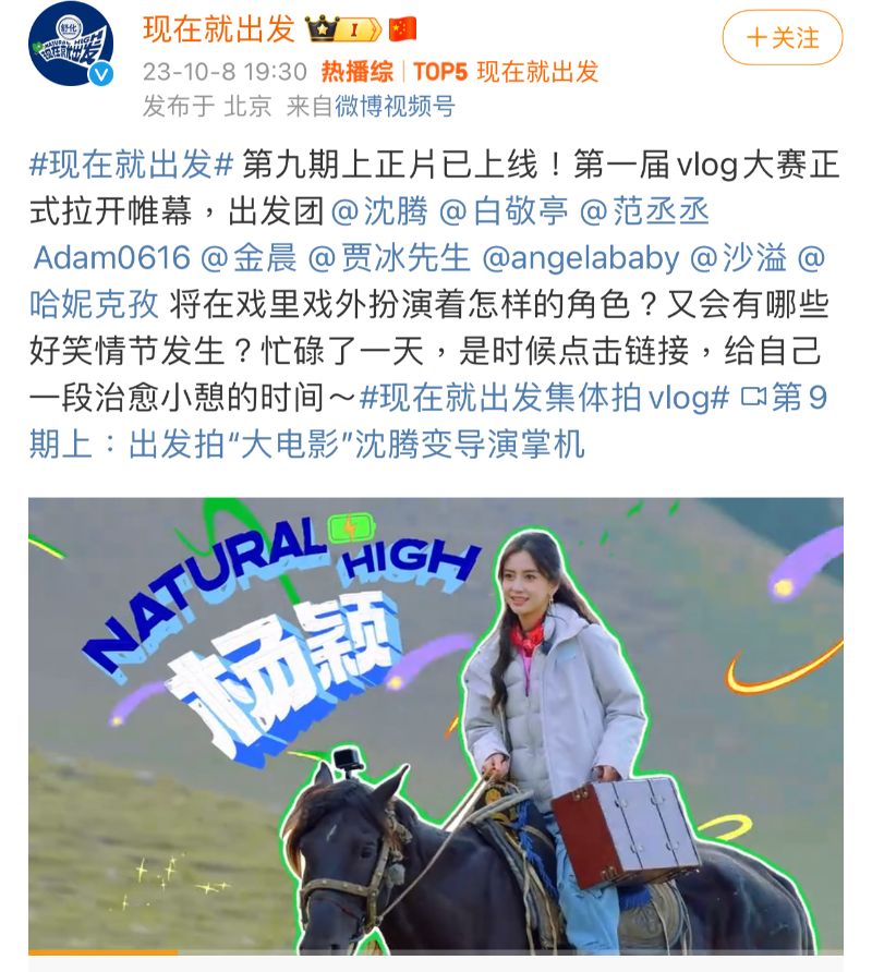 至於楊穎當嘉賓的《現在就出發》,則在8號晚上正常播出👇