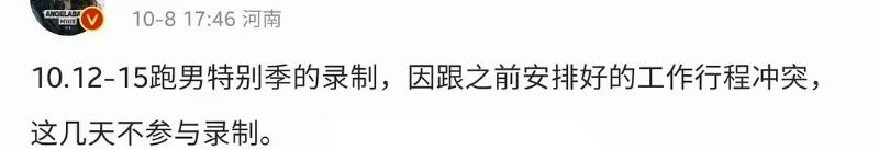 而之前曾傳出,由於瘋馬秀爭議,原定於十月初官宣的《奔跑吧特別季》將被延遲,甚至傳出可能會替換掉Baby的消息,但粉絲一直都說是造謠。結果沒想到8號傍晚,居然還蹲到了楊穎粉絲對接方的正式聲明,表示將缺席《奔跑吧特別季》第一期的錄製,也就是說,節目組將按照網傳時間10月12日至15日錄製,但Baby…不去了!