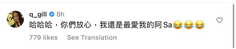 但阿嬌隨後在評論區補充,表示「最愛還是我的阿Sa」,讓這次“官宣”行動更“撲朔迷離”👇
