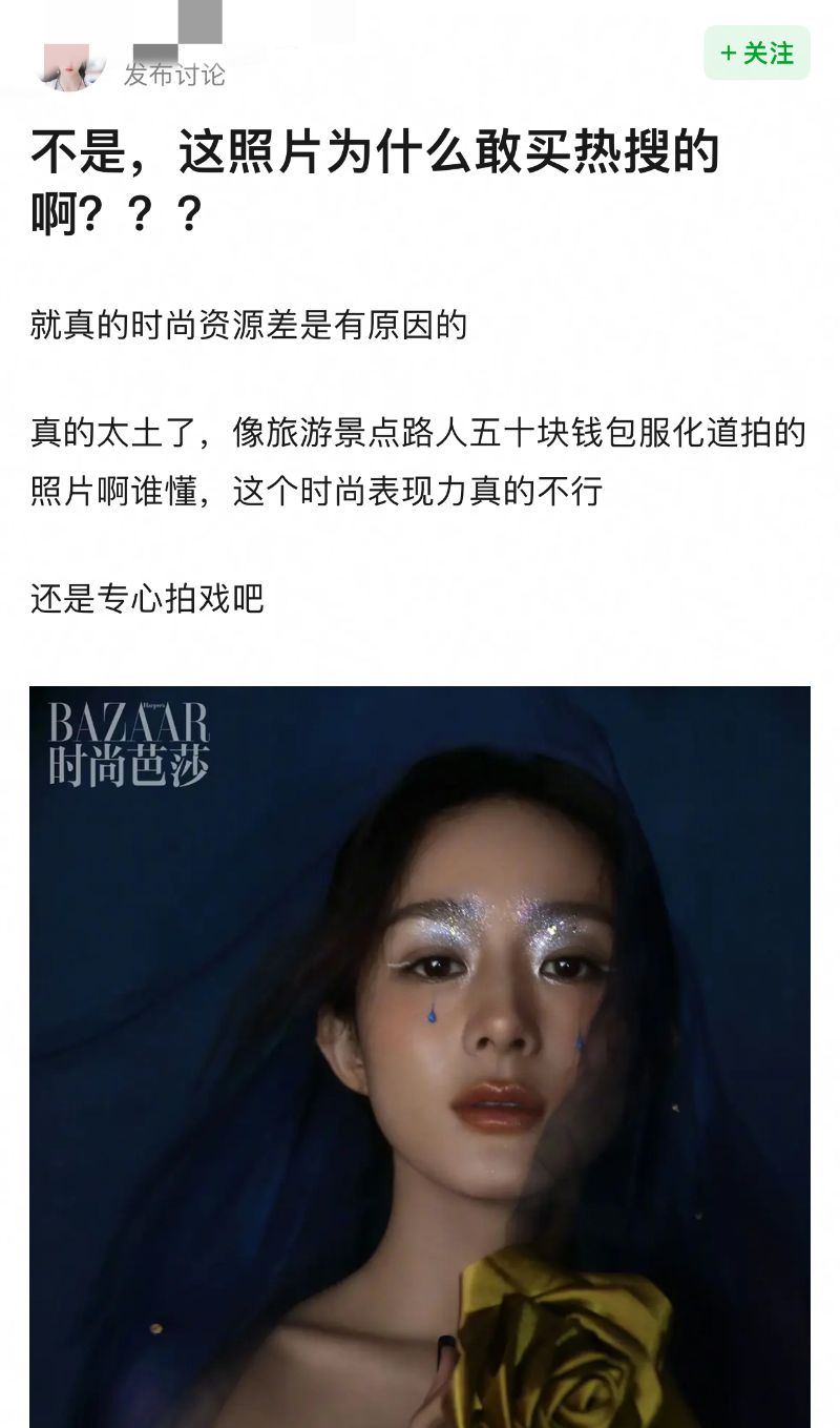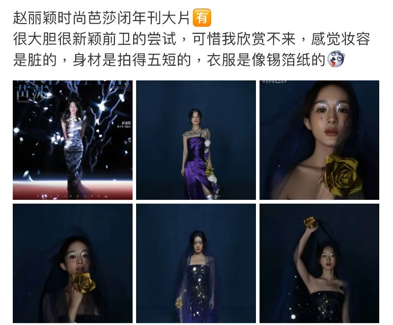而這次負責掌鏡的攝影師是陳漫,可以說是圈內十分出圈的攝影師,但這次和趙麗穎合作,卻被批「陳漫都救不了的時尚表現力」👇
