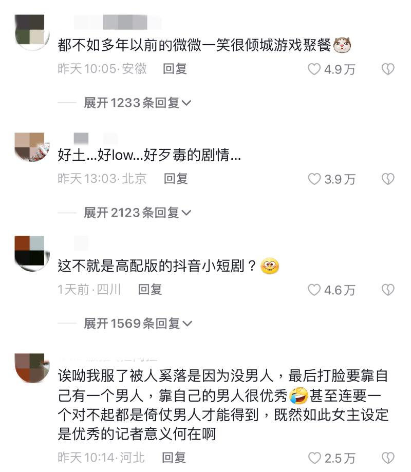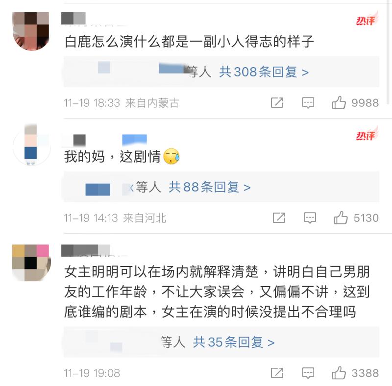 當時就有不少網友熱評,表示2023年了,居然還有這種劇情?連帶的,就連白鹿的演技都被審判了👇